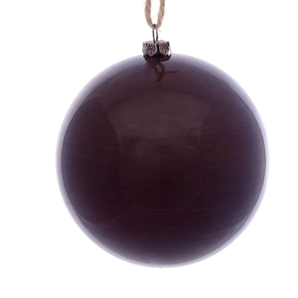 Vickerman 4" Plum Wood Grain Ball Ornament. These ornaments are the perfect addition to any holiday decorating project. They features a light wood grain pattern. Includes 6 pieces per pack.