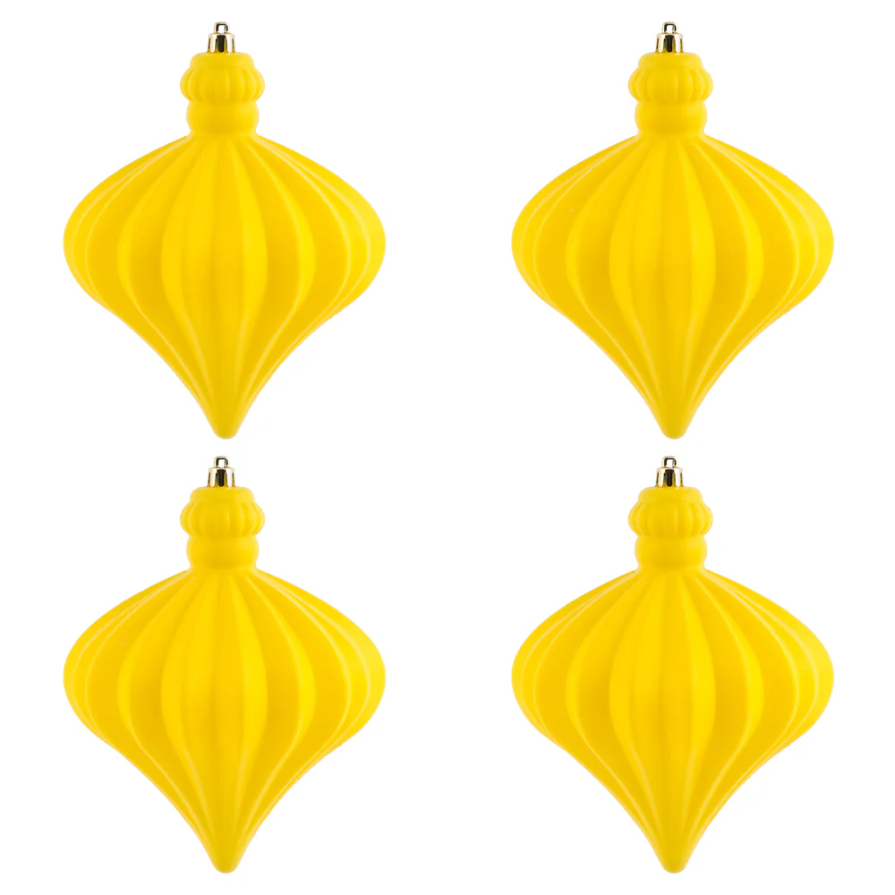 Vickerman 6" Yellow Matte Onion Drop Christmas Ornament 4 per pack