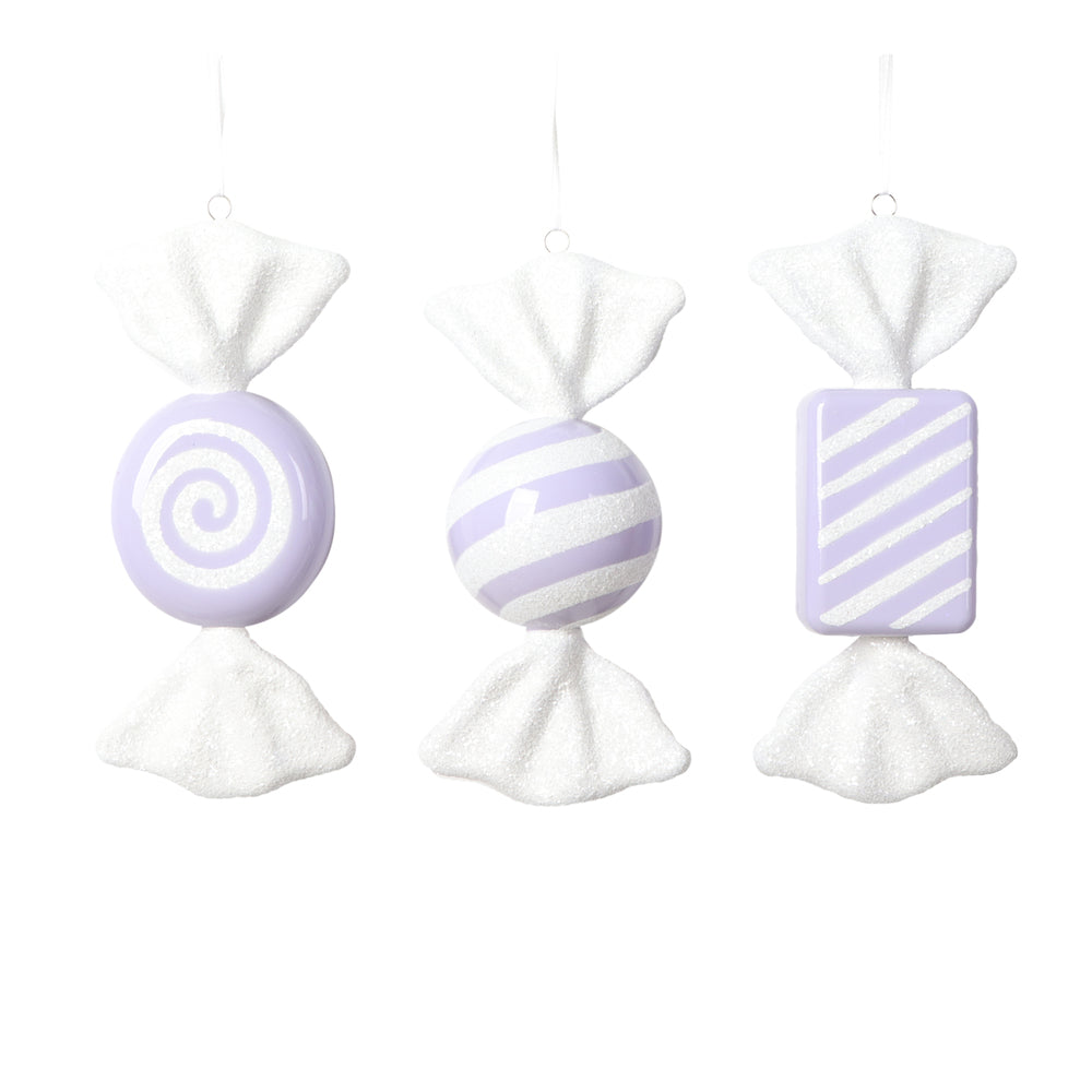Vickerman 7.5"-8" Pastel Lavender Candy Ornament Assortment 3 per bag.
