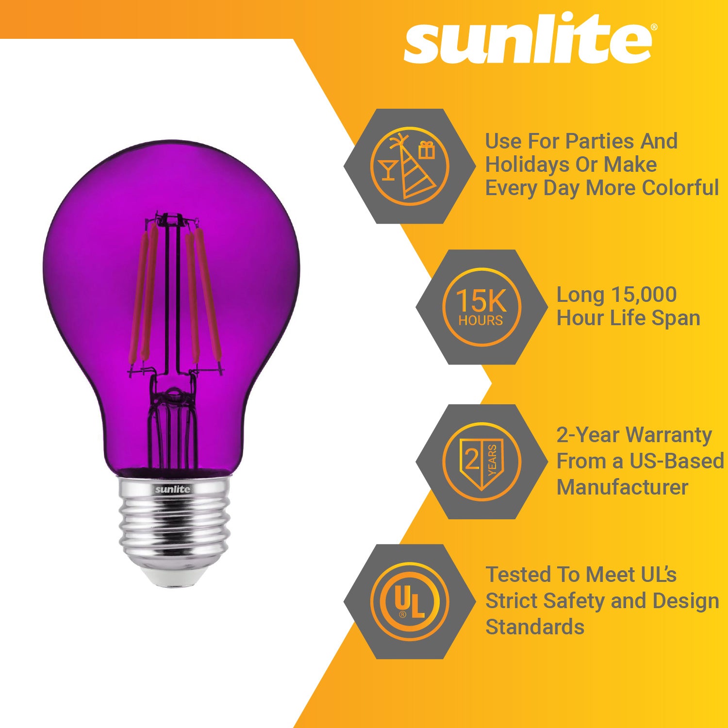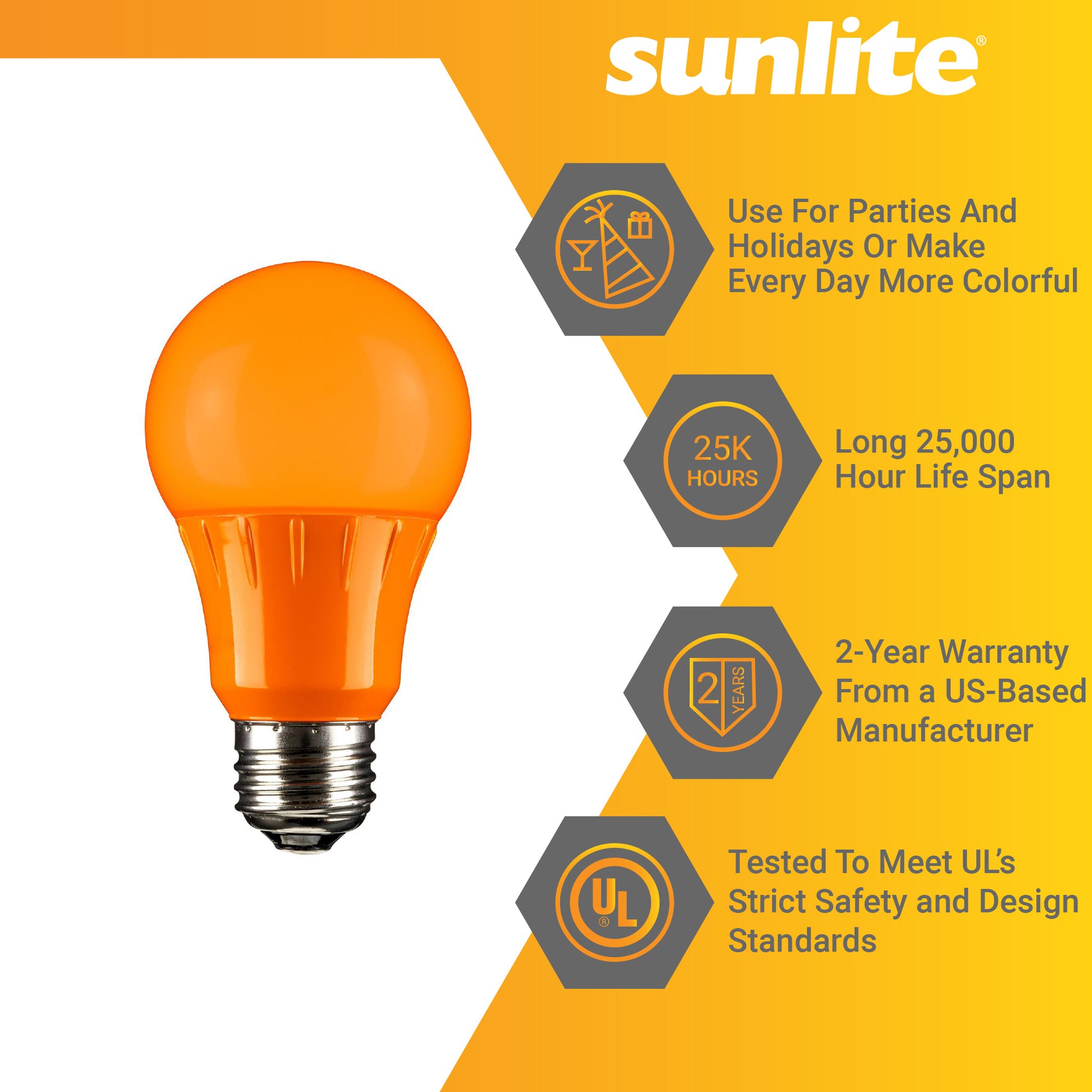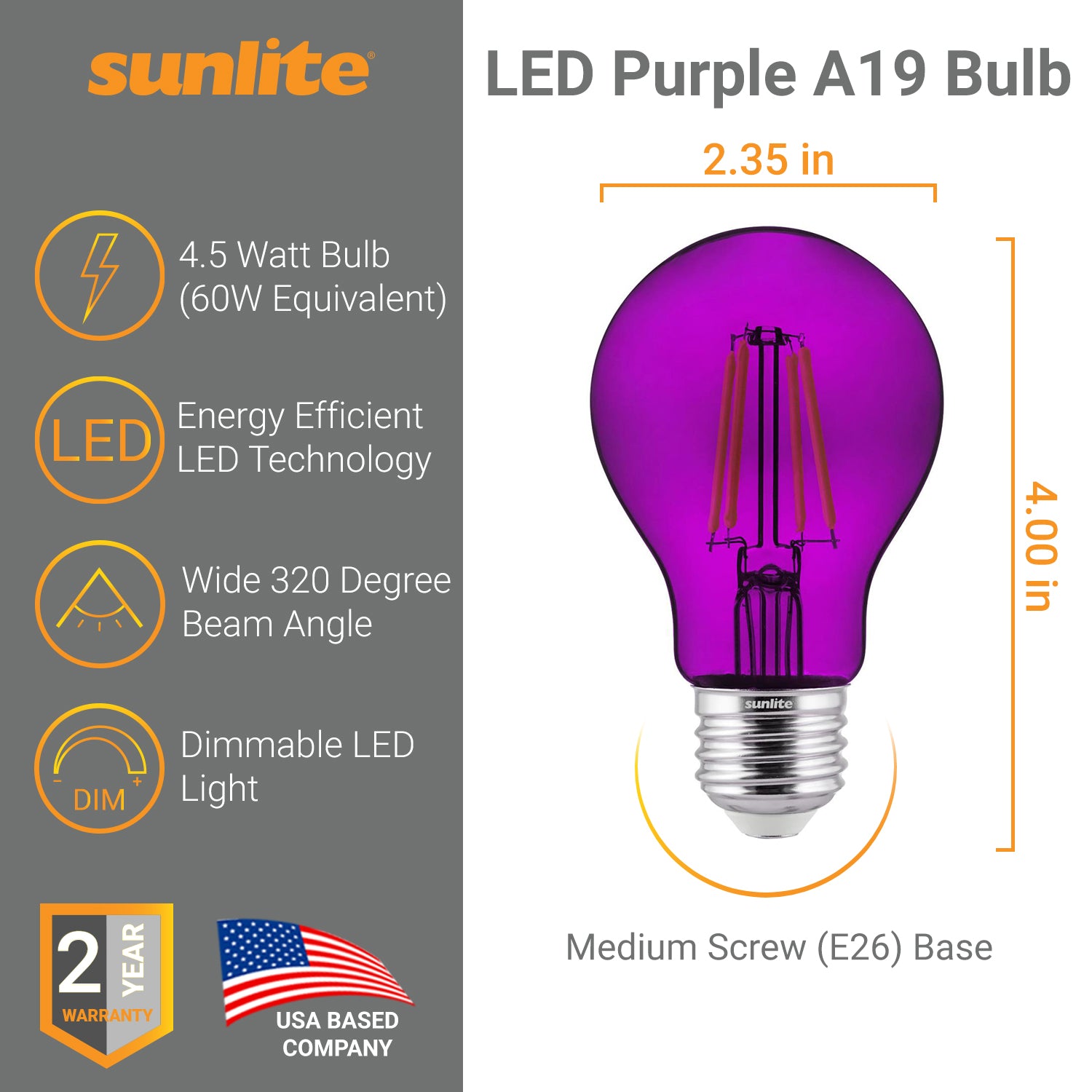 2-Pack Sunlite LED Transparent Orange A19 Filament Bulbs, 4.5 Watts, Dimmable, UL Listed