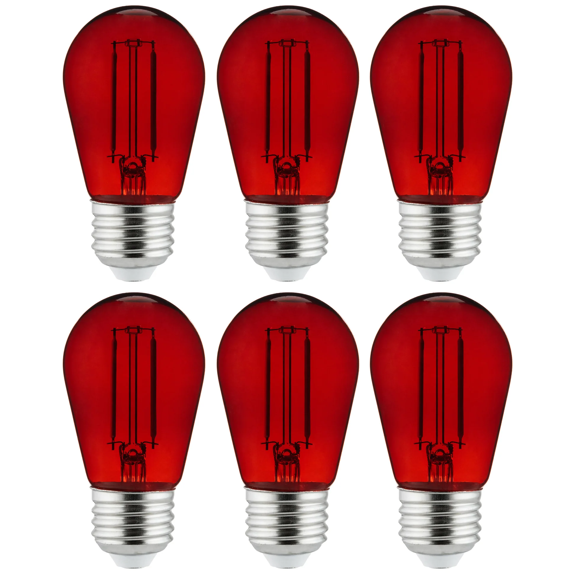 Sunlite 40977 LED S14 String Light Bulb, 2 Watts (25W Equivalent), Medium E26 Base, Party Decoration, Holiday Lighting, Transparent, Dimmable, UL Listed, Red, 6 Count
