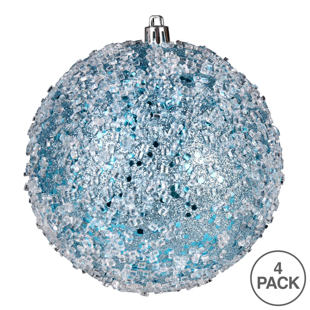 Vickerman 6" Baby Blue Glitter Hail Ball Ornament 4 per Bag