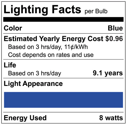 Luxrite LED A19 Colored Light Bulb, E26 - Medium Base, 8W, Blue Finish, Non-Dimmable, Shatter Proof (LR21491)