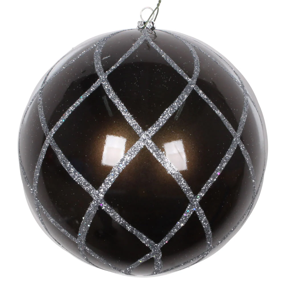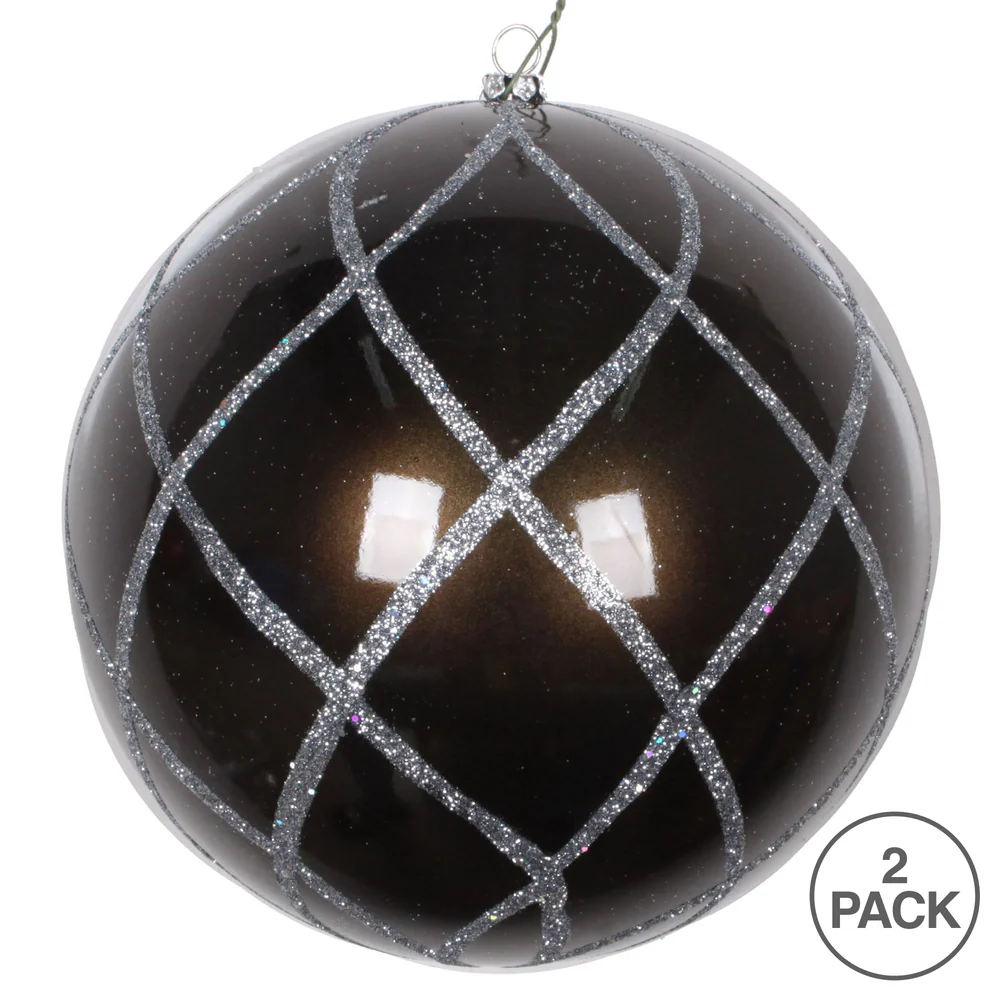 Vickerman 4.75" Mocha Candy Finish Ball Ornament with Glitter Lines 4 per Bag