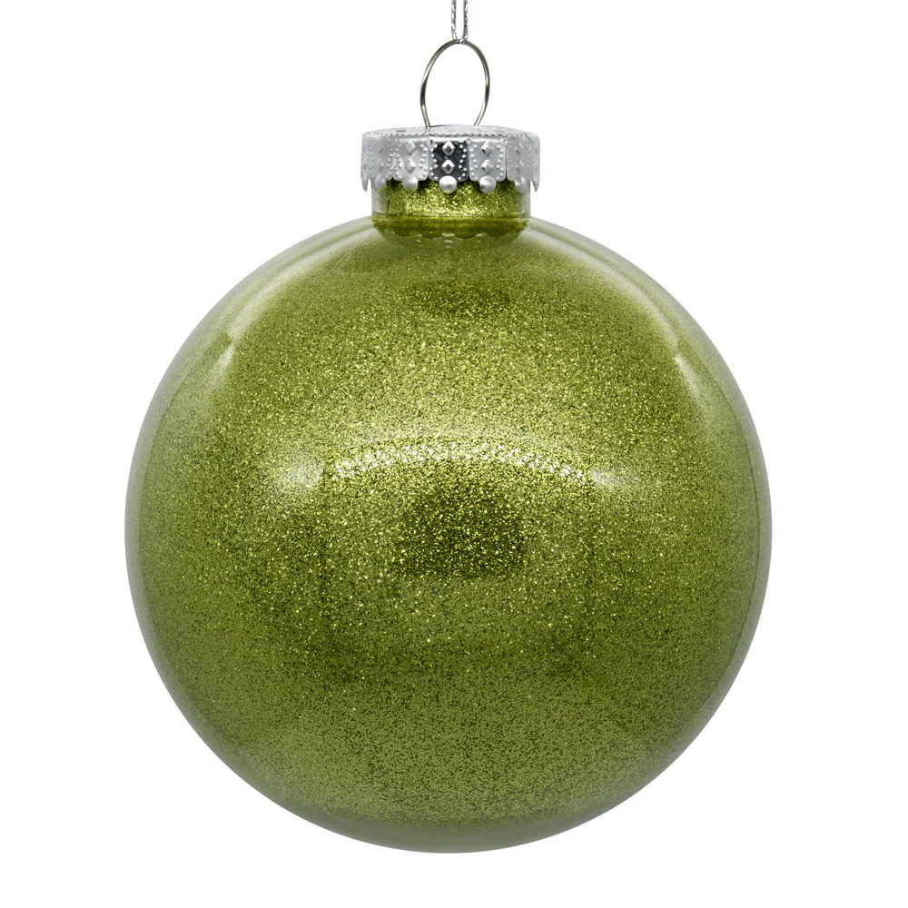 Vickerman 4.75" Clear Ball Christmas Ornament with Lime Glitter Interior 4 Pieces per bag