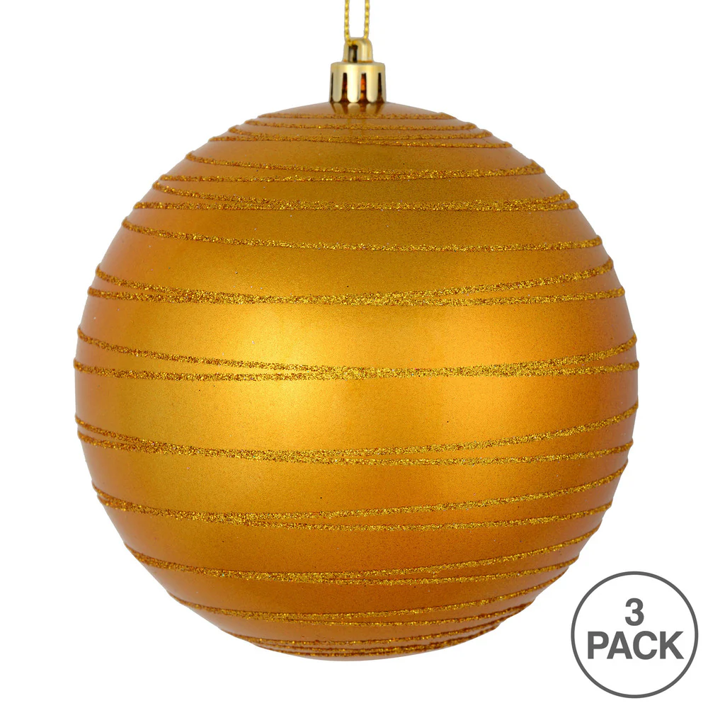 Vickerman 6" Antique Gold Candy Finish Ball Ornament with Glitter Lines 3 per Bag