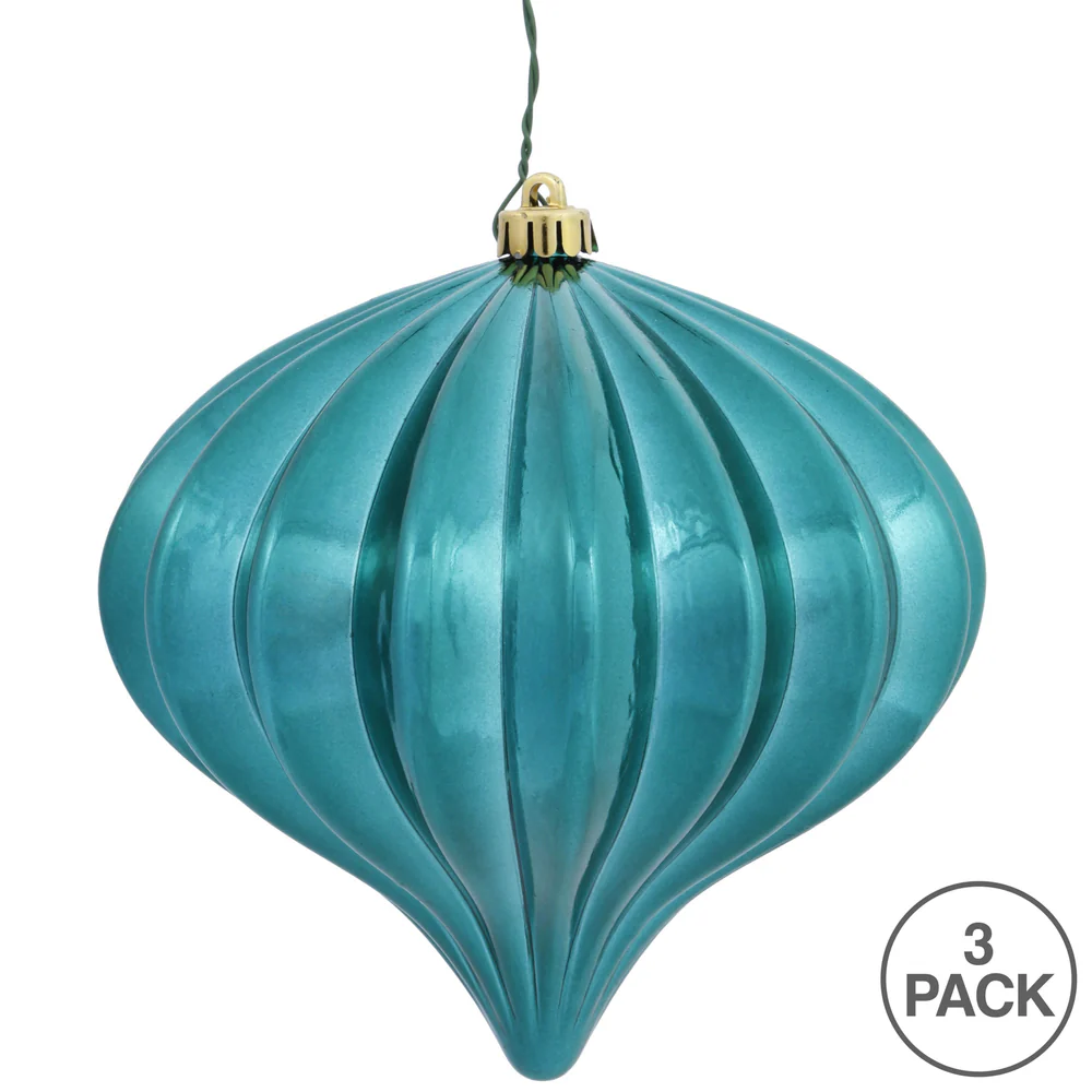 Vickerman 5.7" Teal Shiny Onion Christmas Ornament UV treated Set of 3