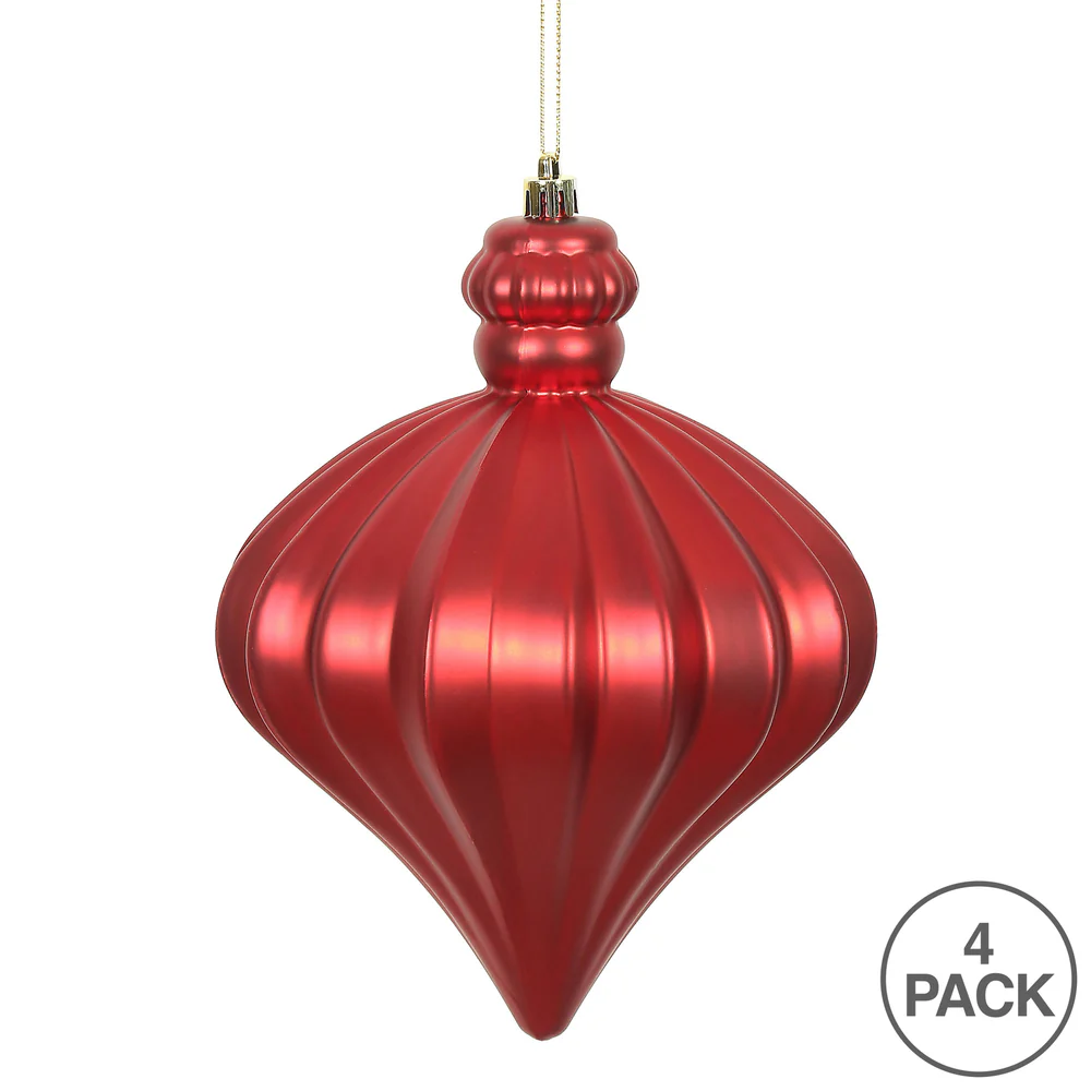 Vickerman 6" Red Matte Onion Drop Christmas Ornament Set of 4