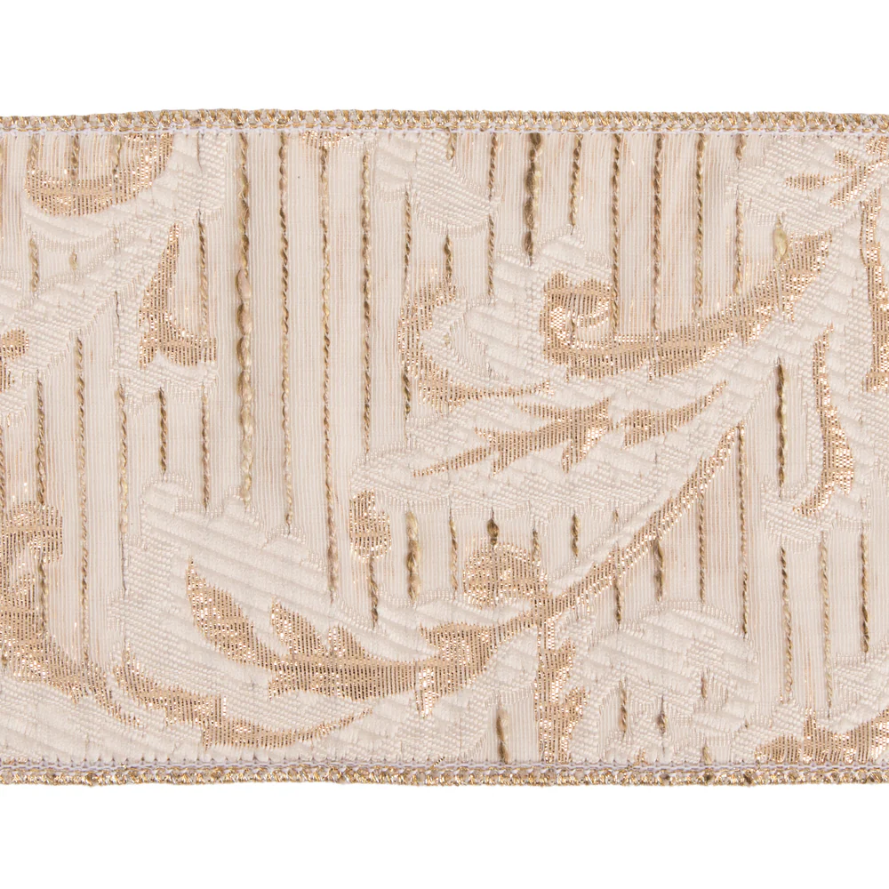Vickerman 4" x 10 Yards Ivory Mgan Jacquard Gold Double Fused Back Ribbon