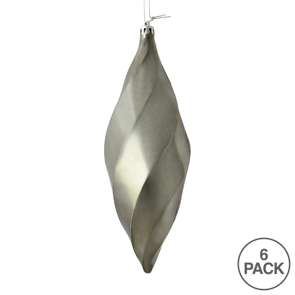 Vickerman 8" Pewter Shiny Swirl Finial Ornament Pack of 6