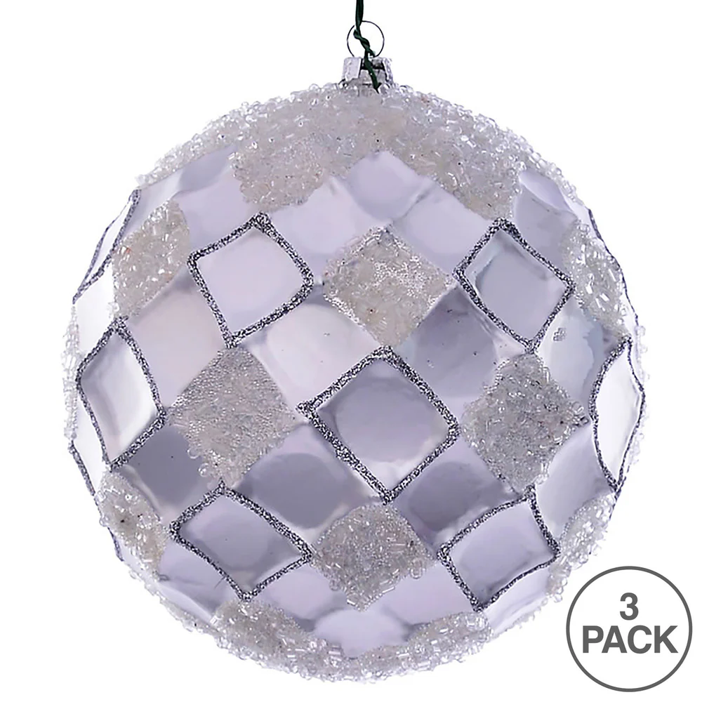 Vickerman 4.75" Silver Net Beaded Ball 3 per Bag