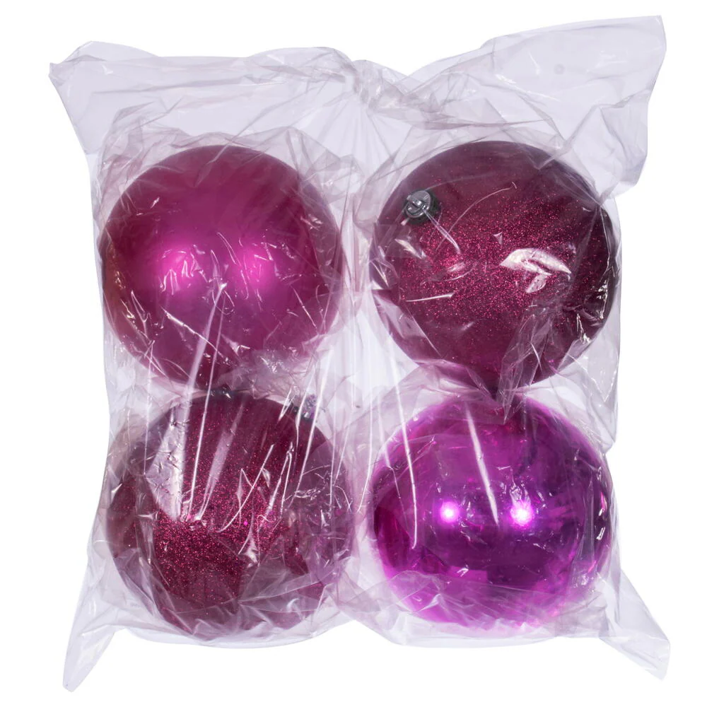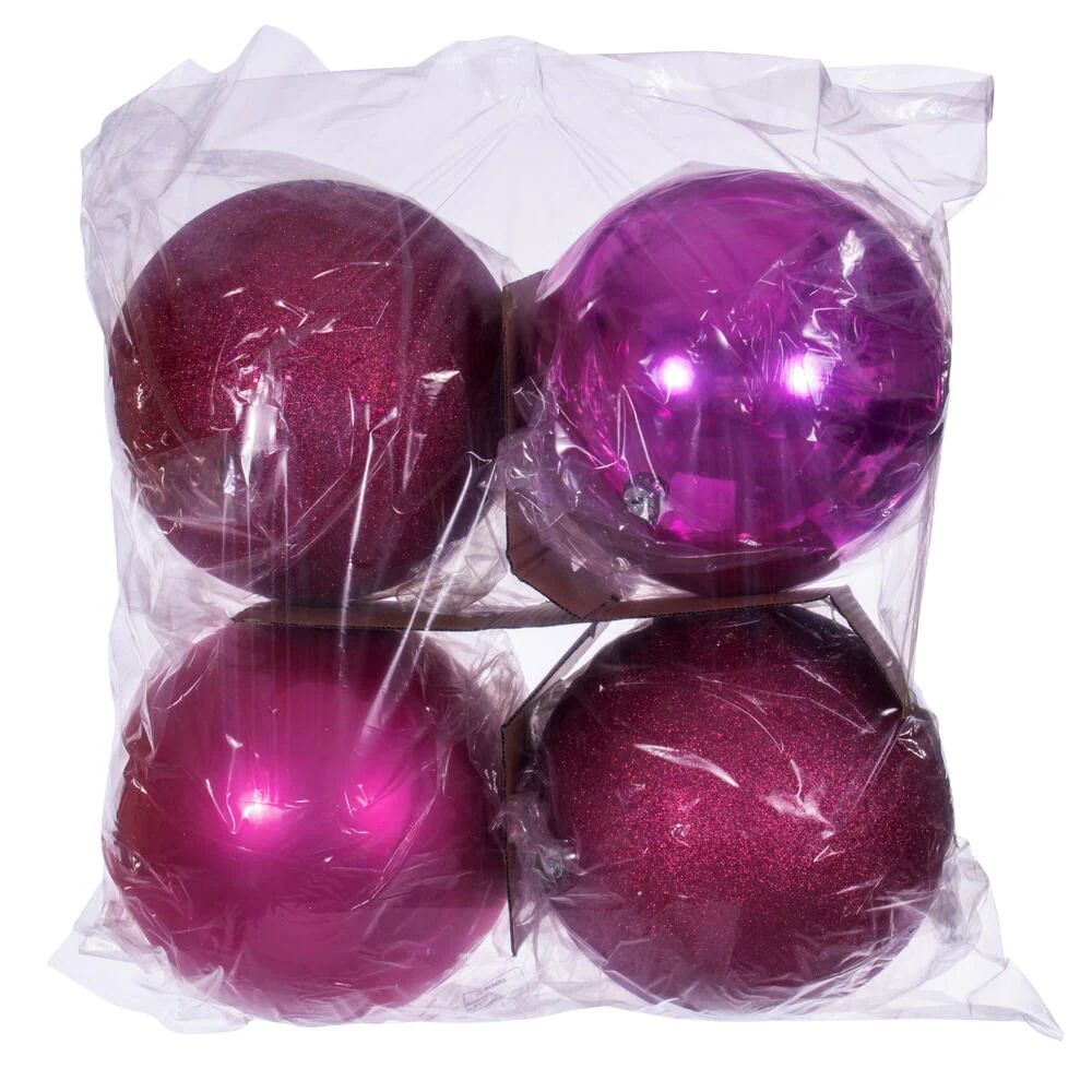 Vickerman 8" Hot Pink 4-Finish Ball Ornament 4 per bag.