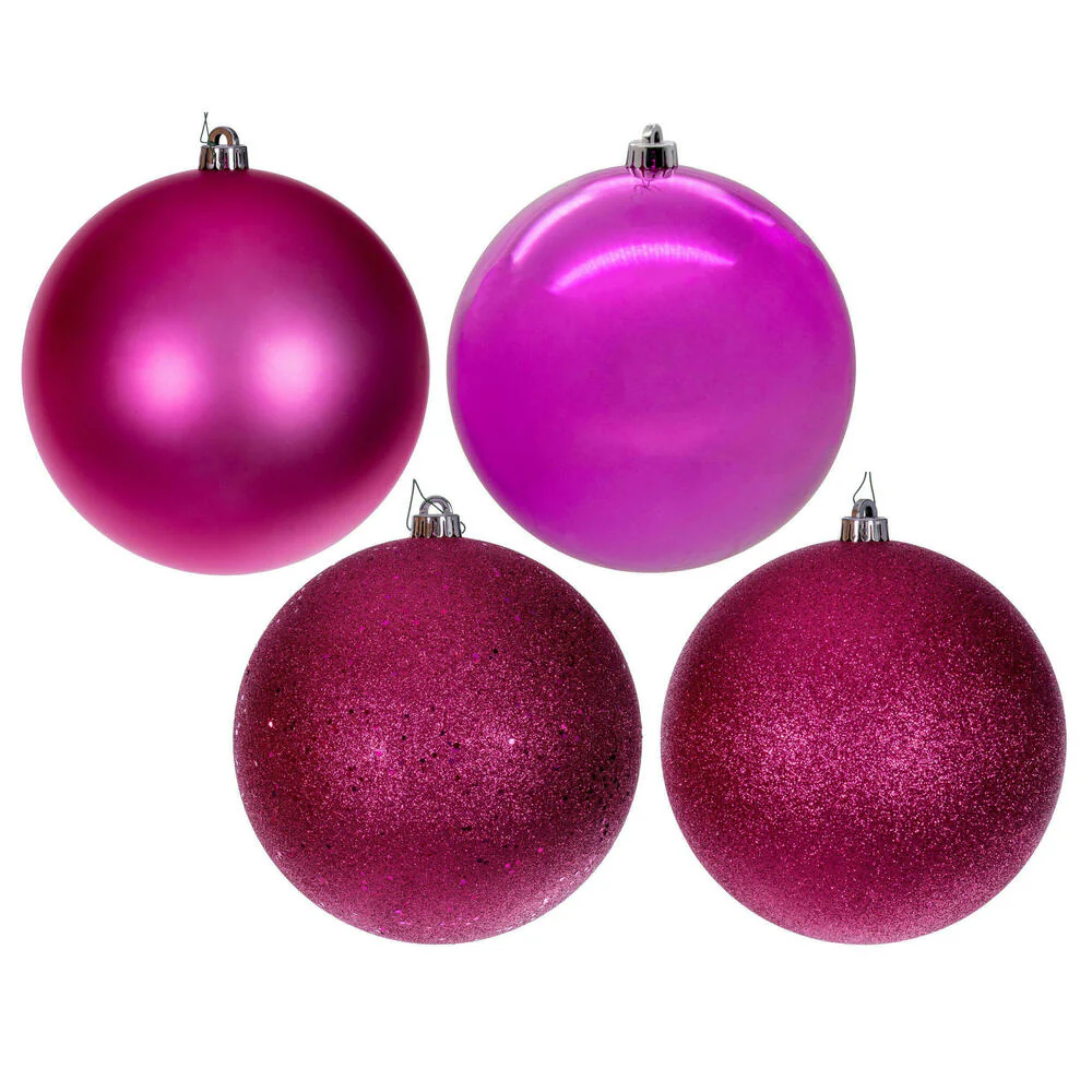 Vickerman 12" Hot Pink 4-Finish Ball Ornament Set 4 per box.