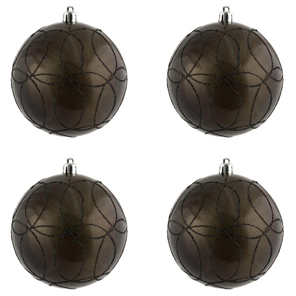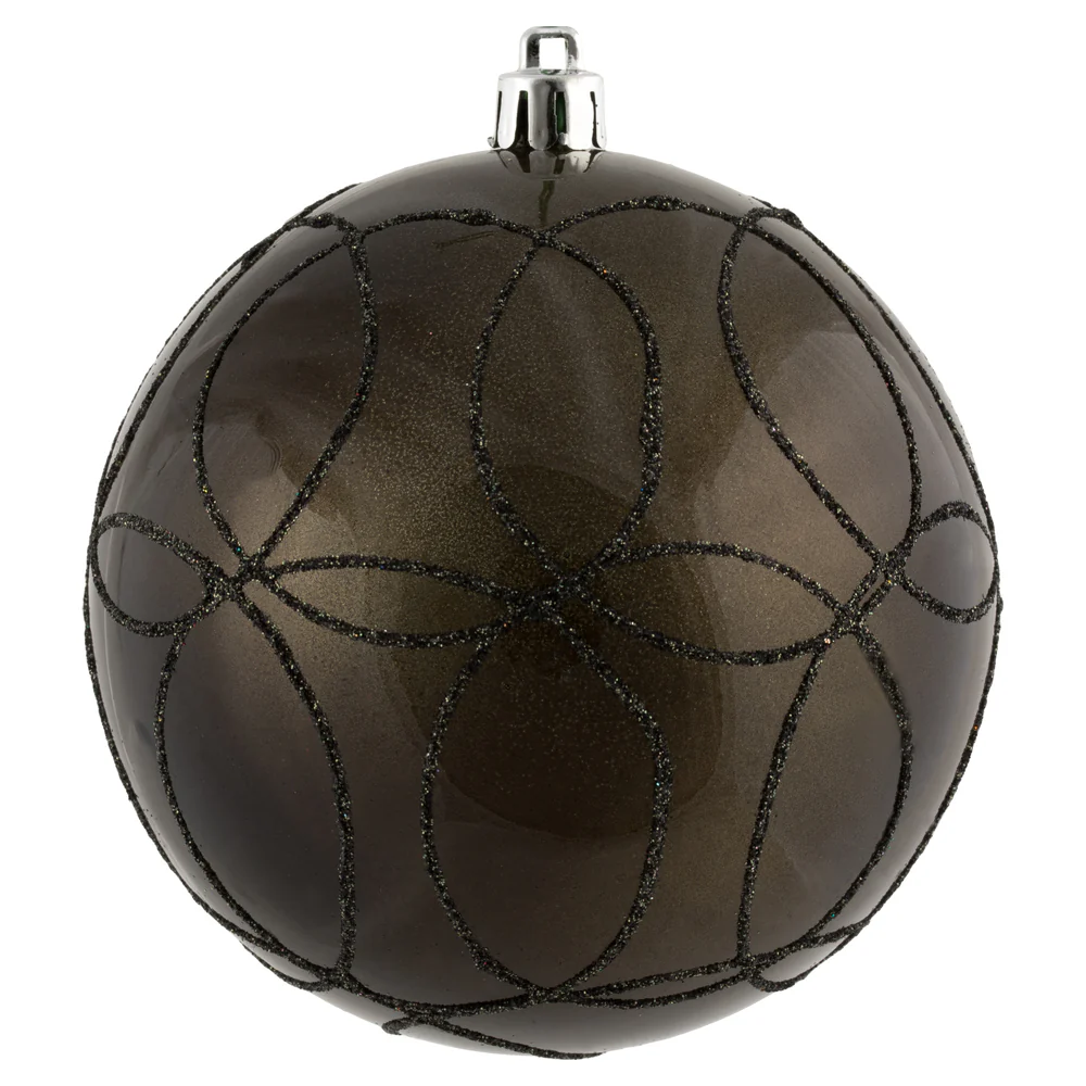 Vickerman 4" Gunmetal Candy Finish Ornament with Circle Glitter Pattern 4 per Bag