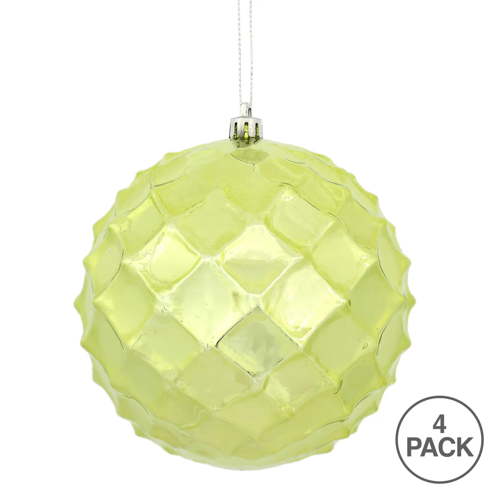 Vickerman 4.75" Lime Shiny Diamond Bauble Ornament 4 per Bag