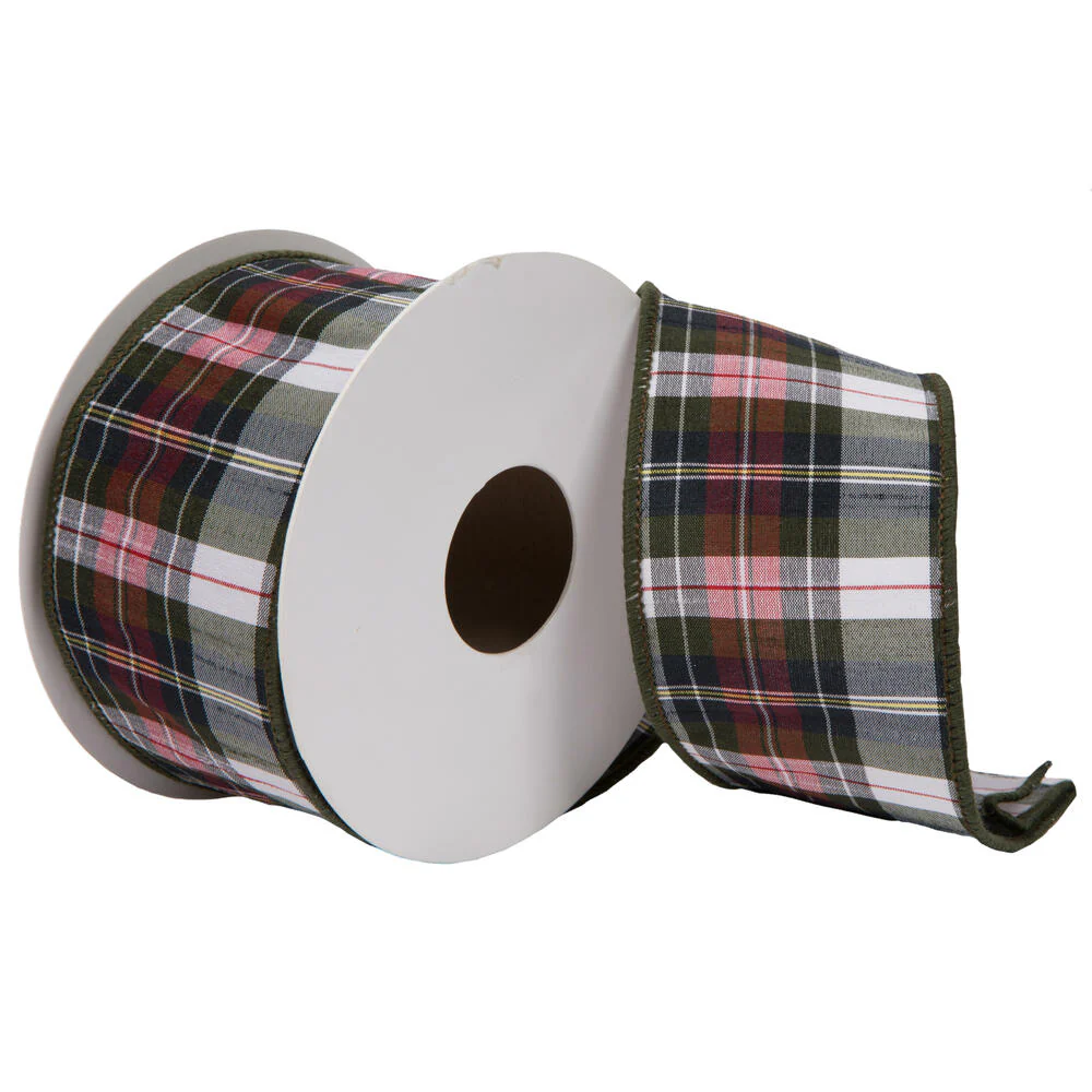 Vickerman 2.5" x 10 Yards Green Dupioni Plaid Ribbon.
