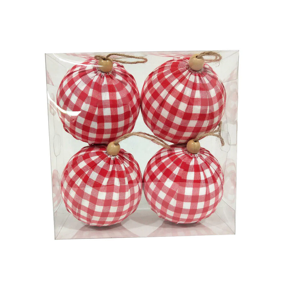 Vickerman 4" Red and White Plaid Cloth Ball Christmas Ornament 4 pieces per box