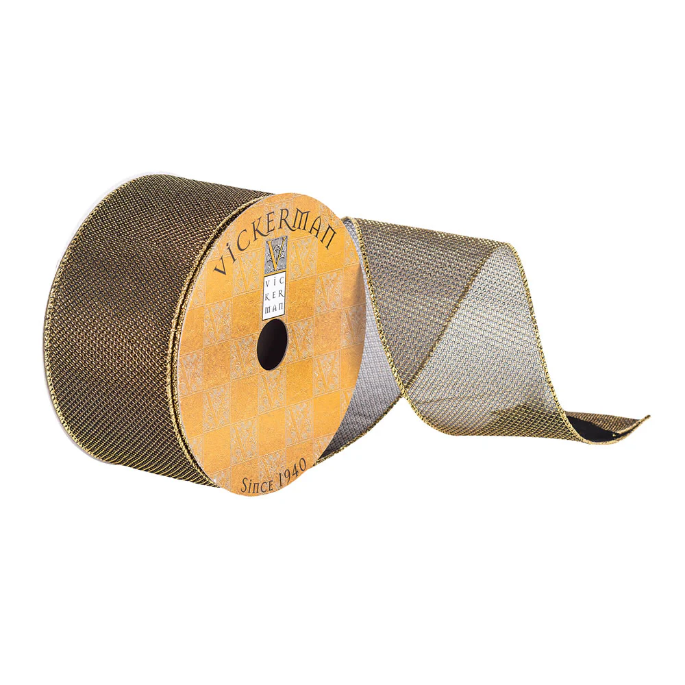 Vickerman 2.5" x 10 Yards Black and Gold Embeveled Christmas Ribbon