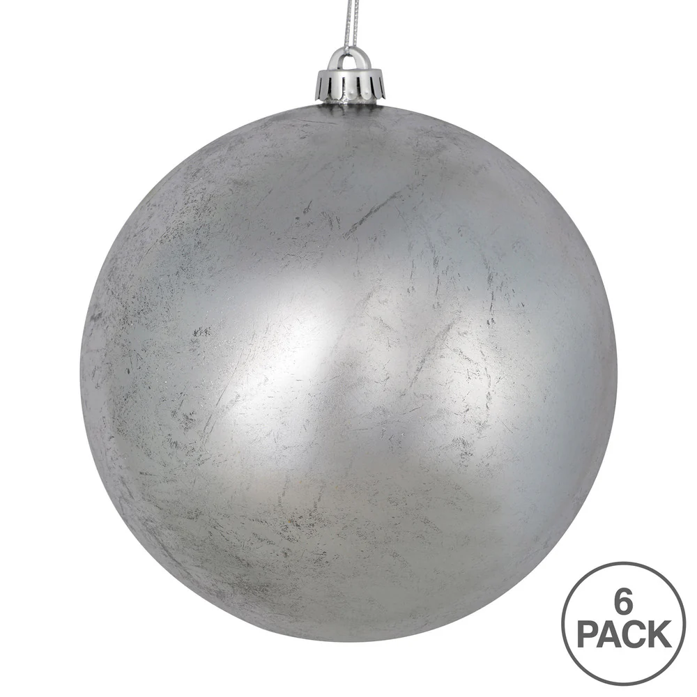 Vickerman 4" Pewter Shiny Mercury Ball Ornament 6 per Bag.