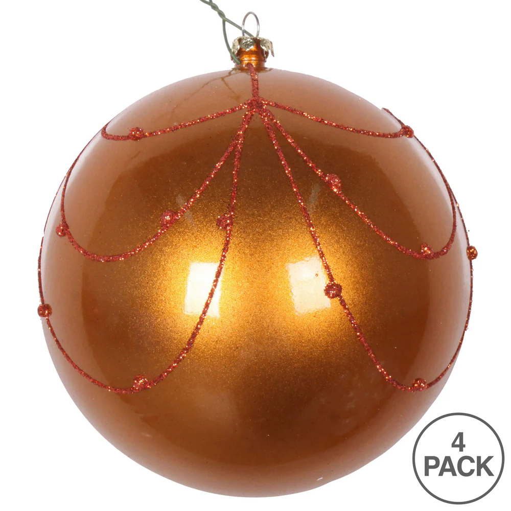 Vickerman 4.75" Copper Candy Finish Curtain Ornament with Glitter Accents 4 per Bag