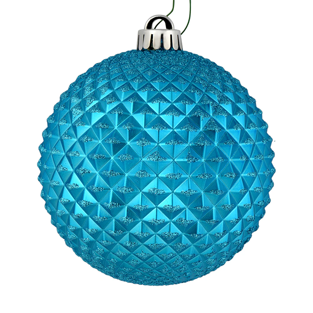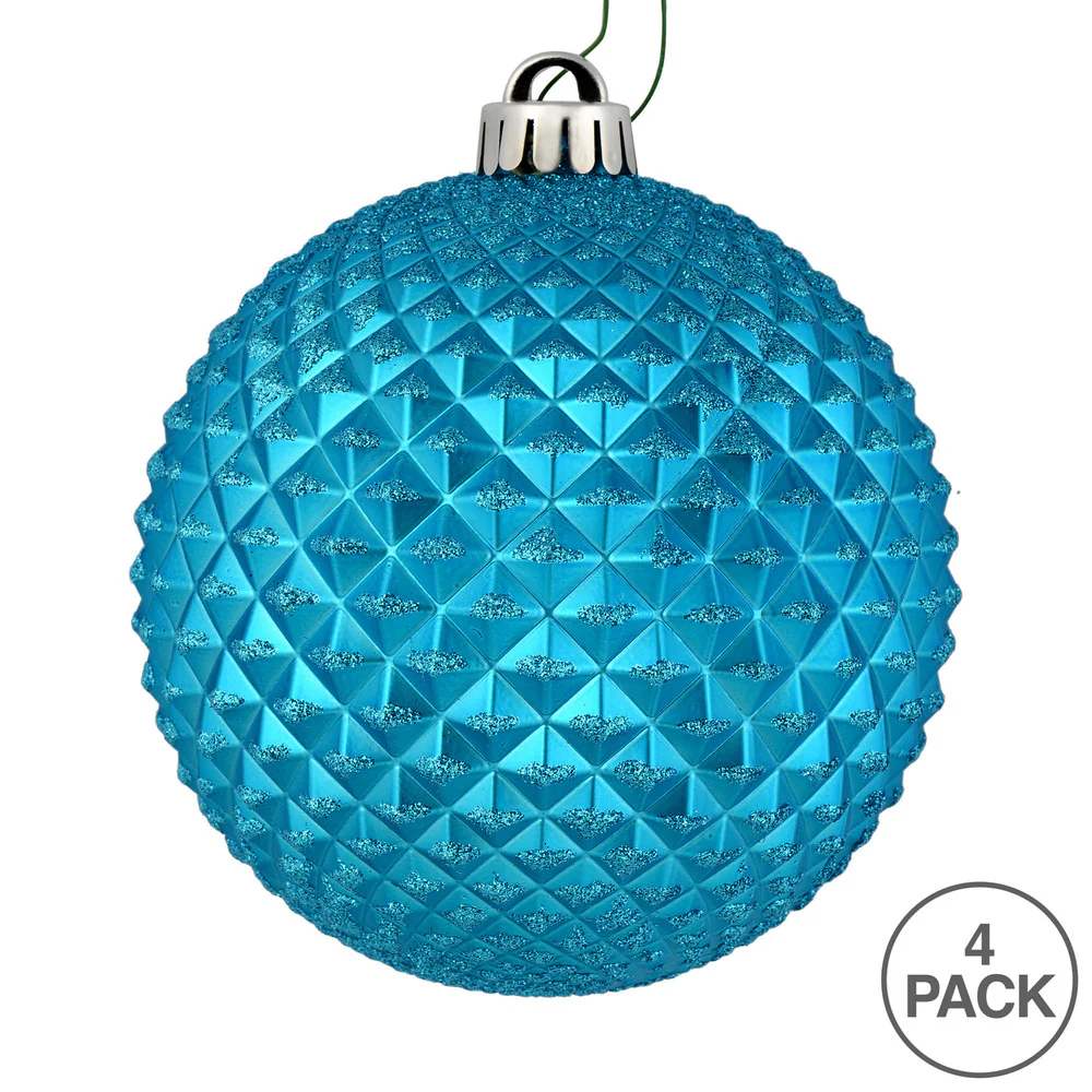 Vickerman 6" Turquoise Durian Glitter Ball Ornament 4 per Bag