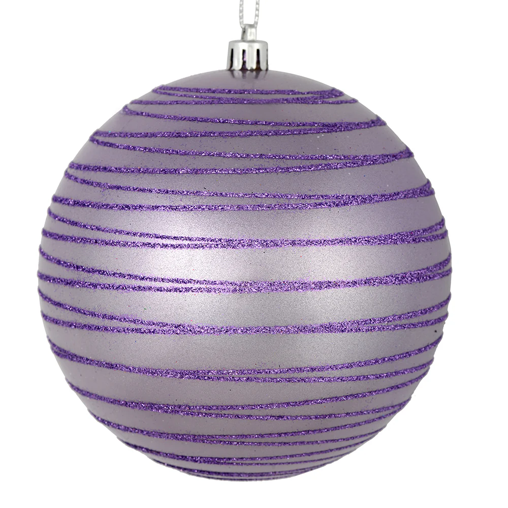 Vickerman 4.75" Lavender Candy Finish Ball Ornament with Glitter Lines 4 per Bag