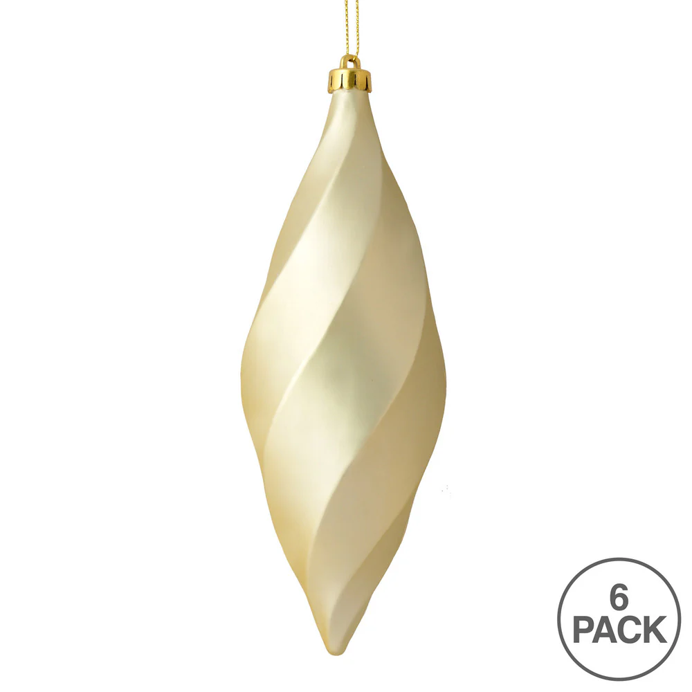 Vickerman 8" Champagne Matte Swirl Finial Ornament Pack of 6