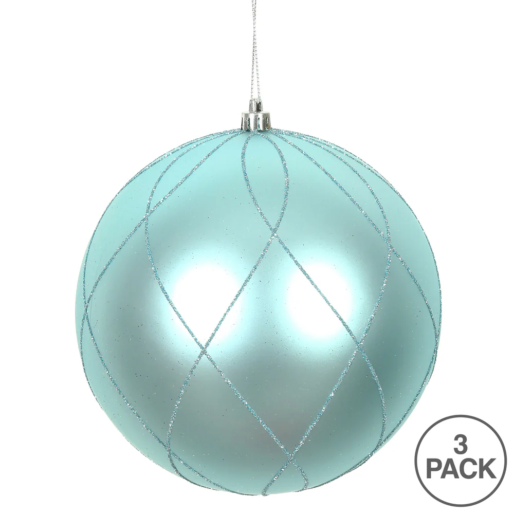 Vickerman 6" Baby Blue Matte and Glitter Swirl Ball Ornament 3 per Box