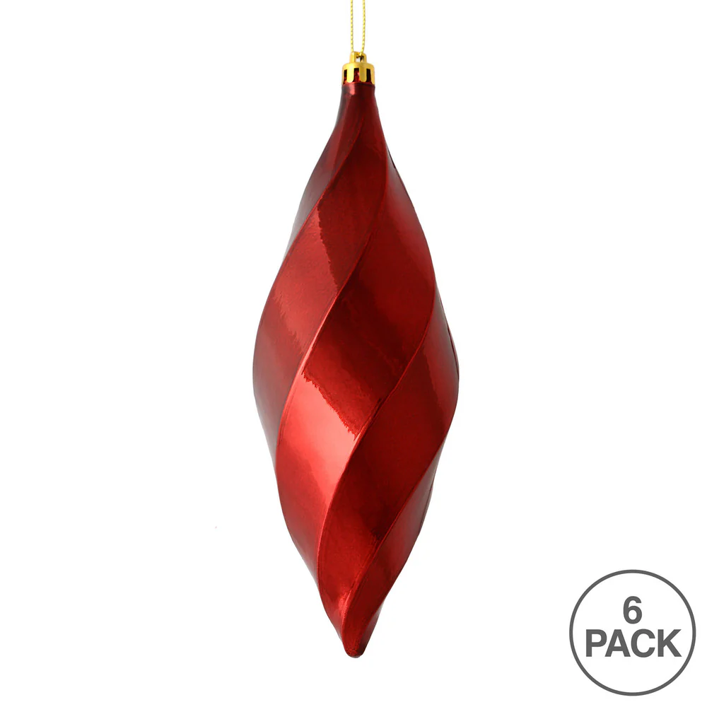 Vickerman 8" Wine Shiny Swirl Finial Ornament Pack of 6