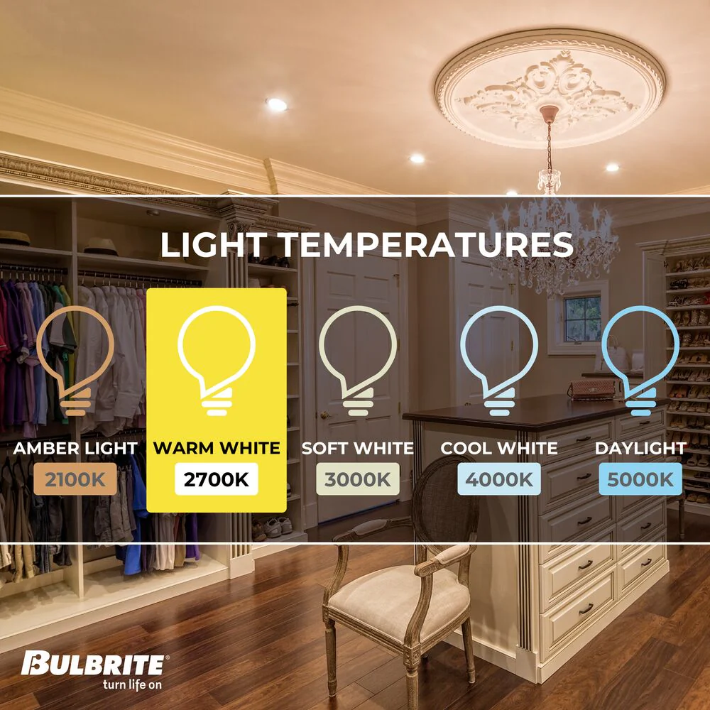Bulbrite LED Filament Pack of (4) 6.5 Watt Dimmable CA10 Light Bulbs with a Clear Finish and Candelabra (E12) Base - 2700K (Warm White Light), 750 Lumens