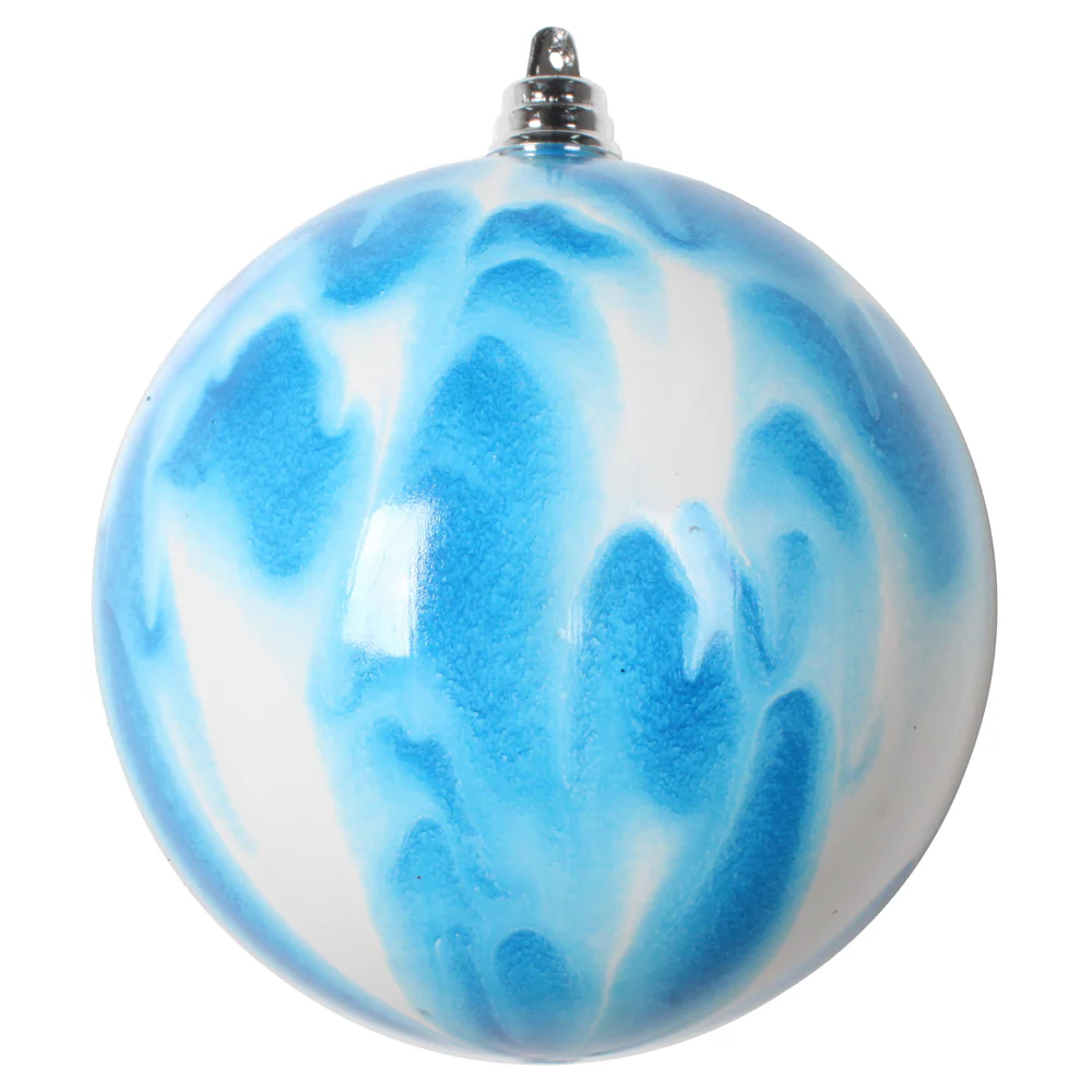 Vickerman 4" Blue and White Marble Ball Ornament 4 per Bag