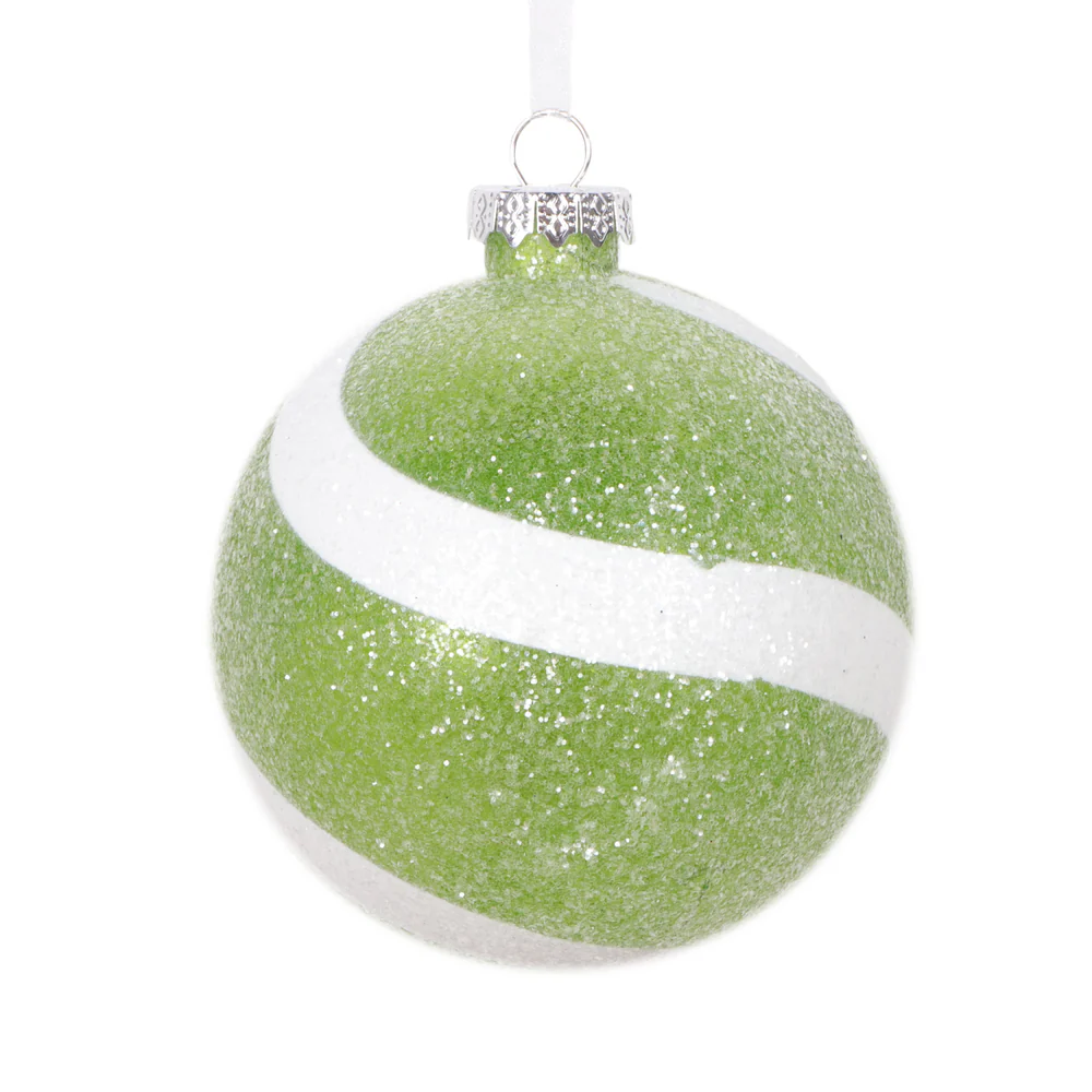 Vickerman 4" Green and White Swirl Sugar Glitter Ball Ornament 4 per bag.