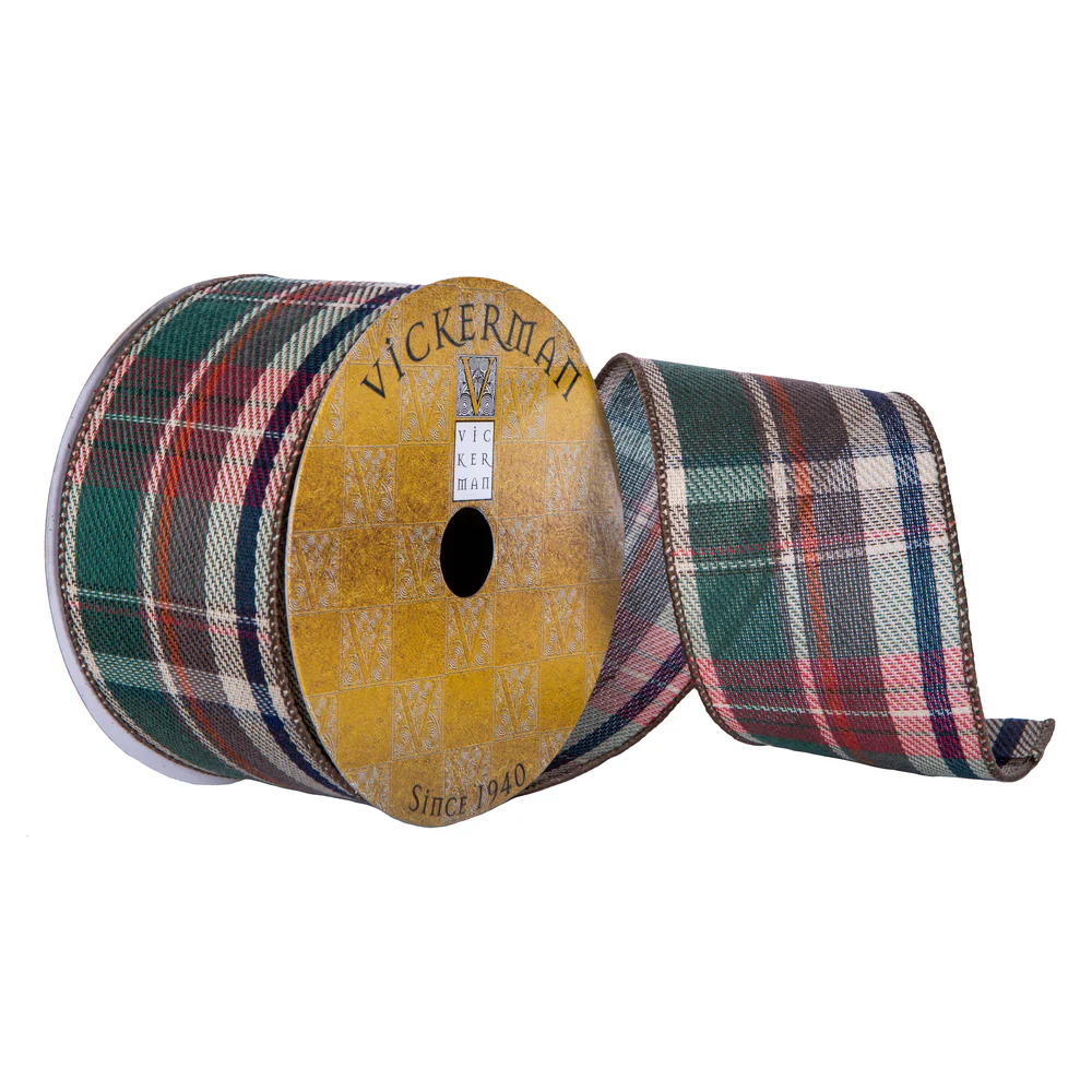 Vickerman 2.5" x 10 Yards Red Green Blue and Beige Soft Plaid Christmas Ribbon