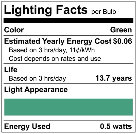 Luxrite LED C7 Small Light Bulb, E12 Candelabra Base, 0.5W, Green Finish (LR21752)