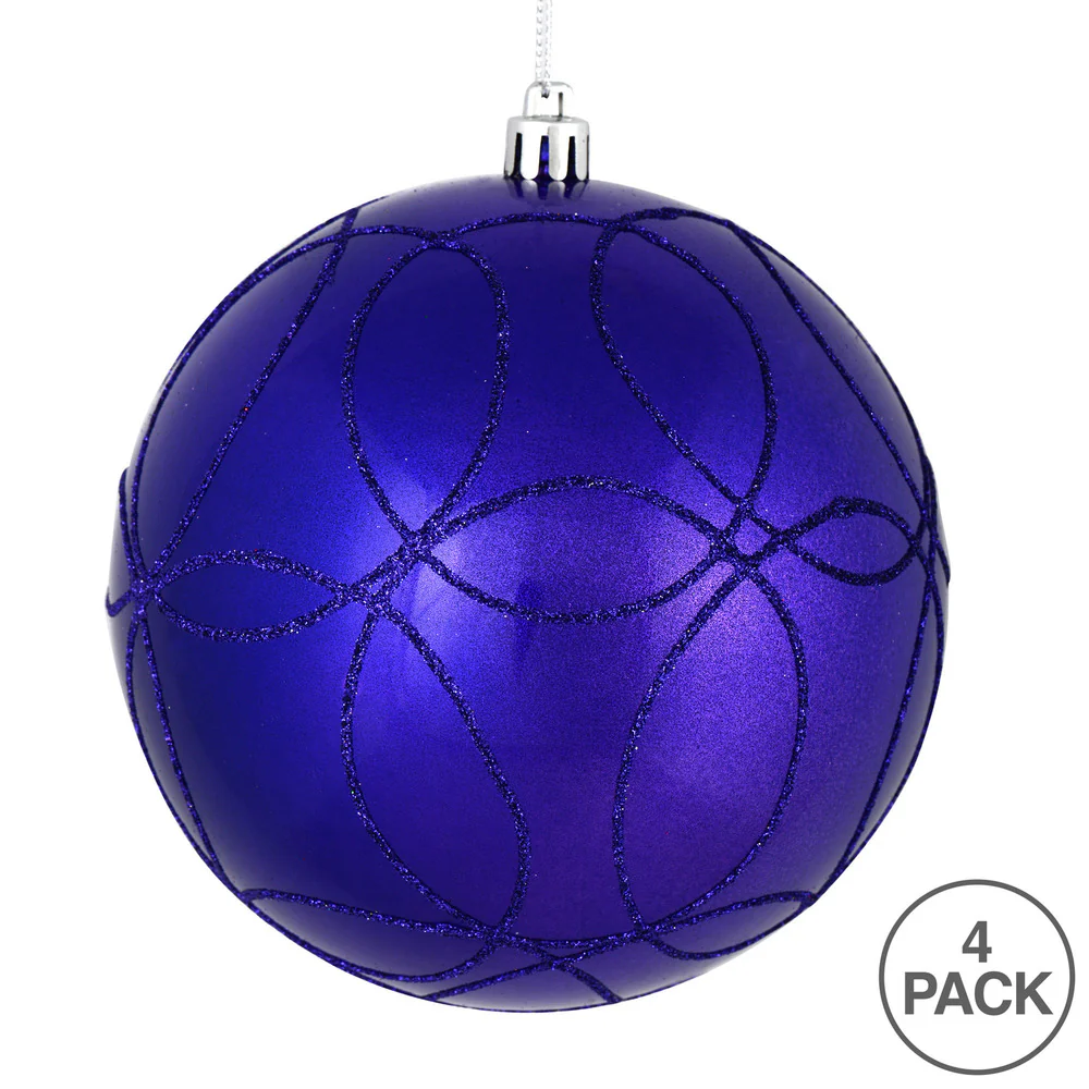 Vickerman 4.75" Purple Candy Ornament with Circle Glitter Pattern 4 per Bag
