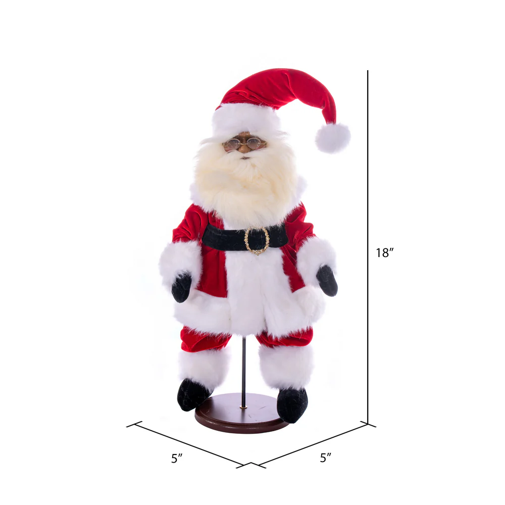 Vickerman 18" Red Traditional Velvet Dark Complexion Santa Doll with Stand. This Santa has glasses stand is removeable.