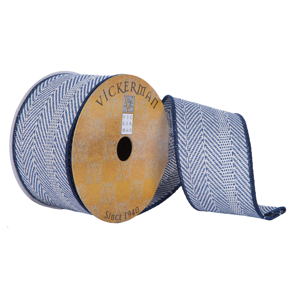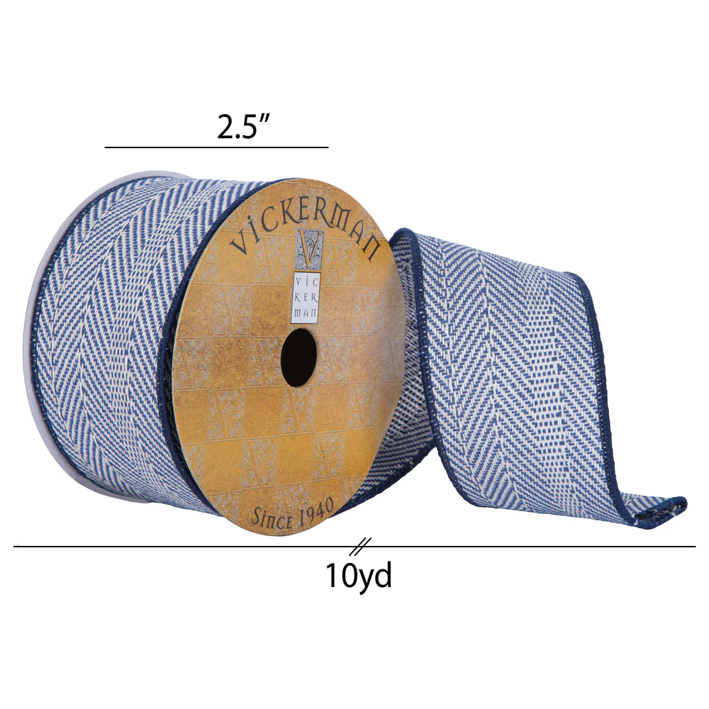 Vickerman 2.5" x 10 Yards Dark Blue and White Herringbone Christmas Ribbon