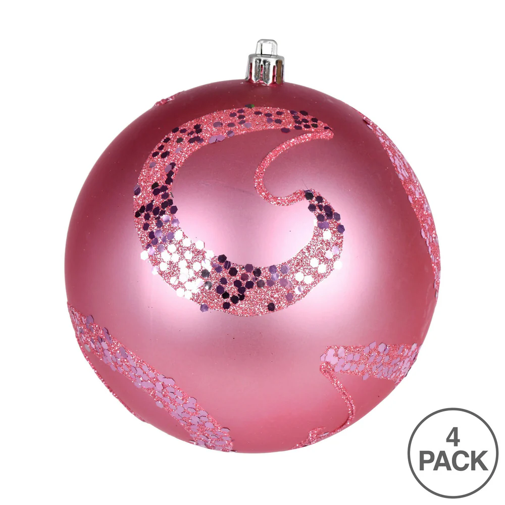 Vickerman 4.75" Pink Matte Sequin Swirl Ornament 4 per Bag