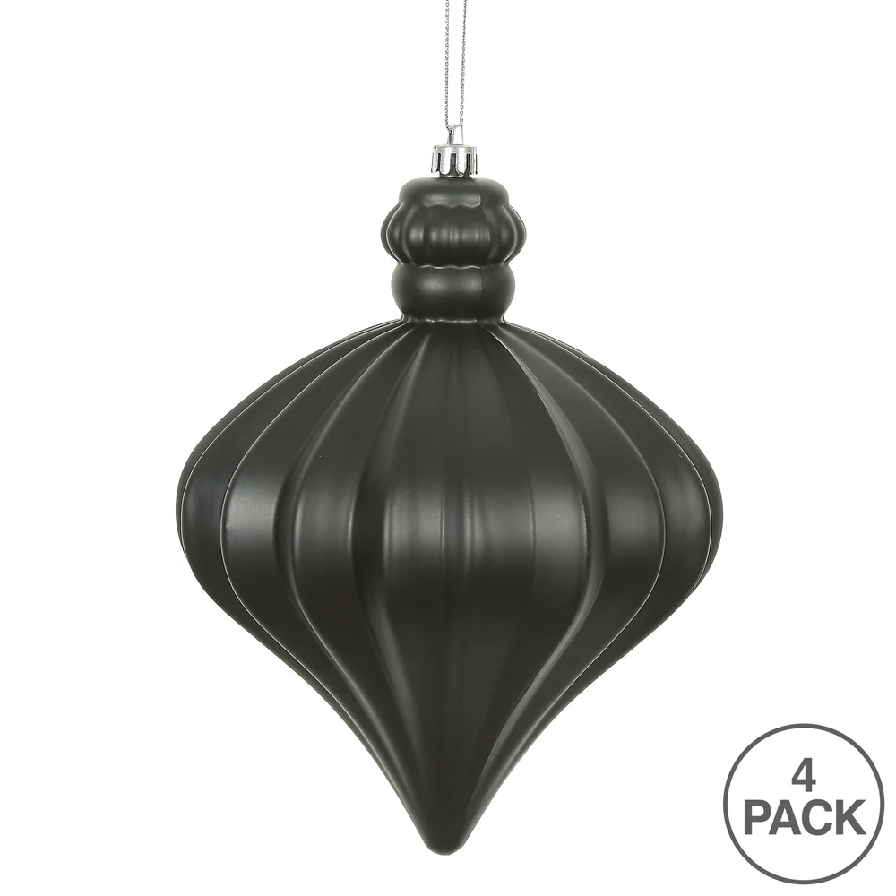 Vickerman 6" Black Matte Onion Drop Christmas Ornament 4 per Bag