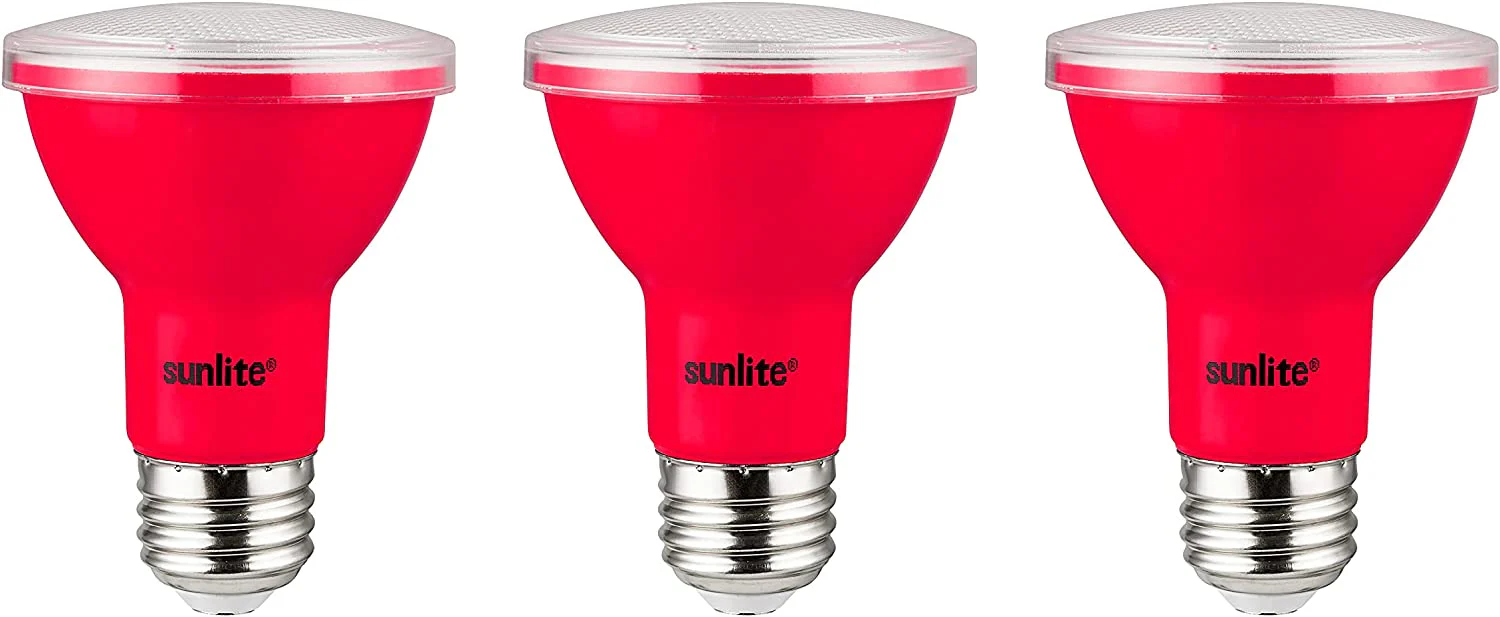 Sunlite 81465 LED PAR20 Colored Recessed Light Bulb, 3 Watt (50w Equivalent), Medium (E26) Base, Floodlight, ETL Listed, Red, Pack of 3