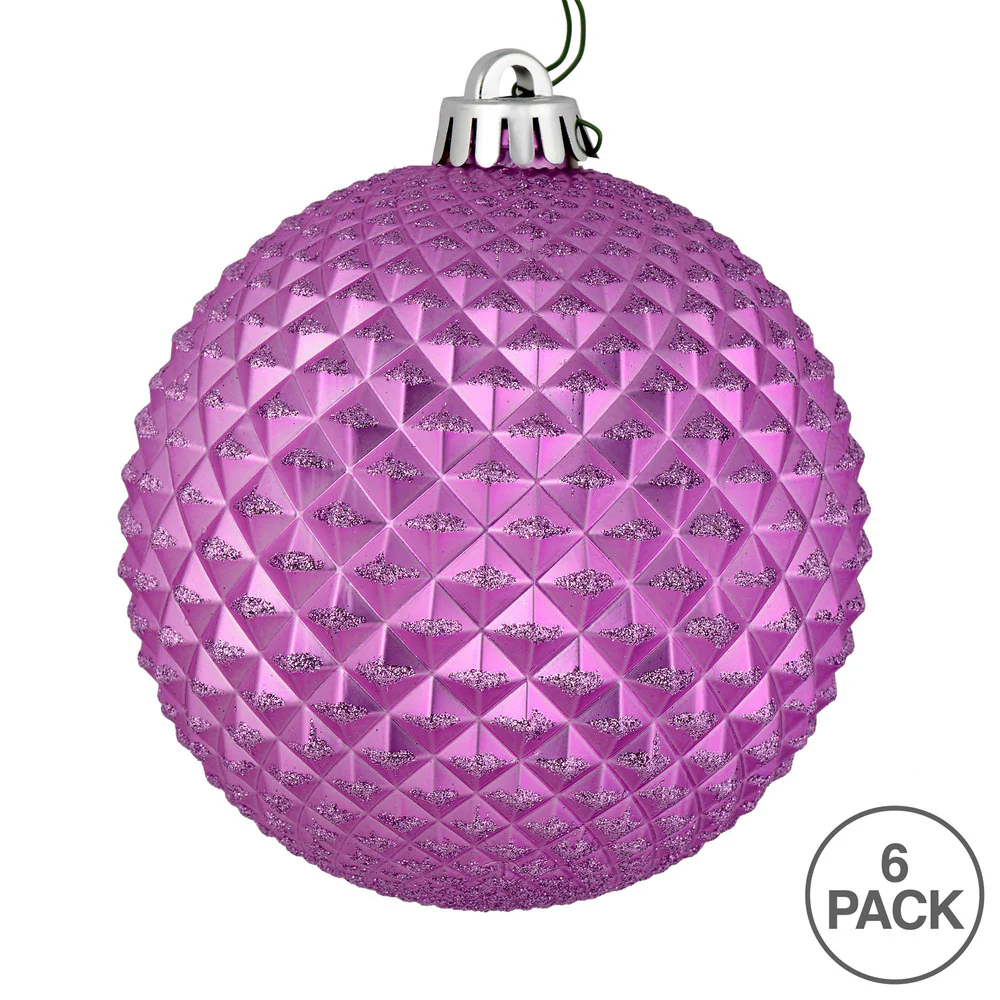Vickerman 6" Mauve Geometric Ball Ornament Featuring a Glitter Finish. Comes 4 per bag