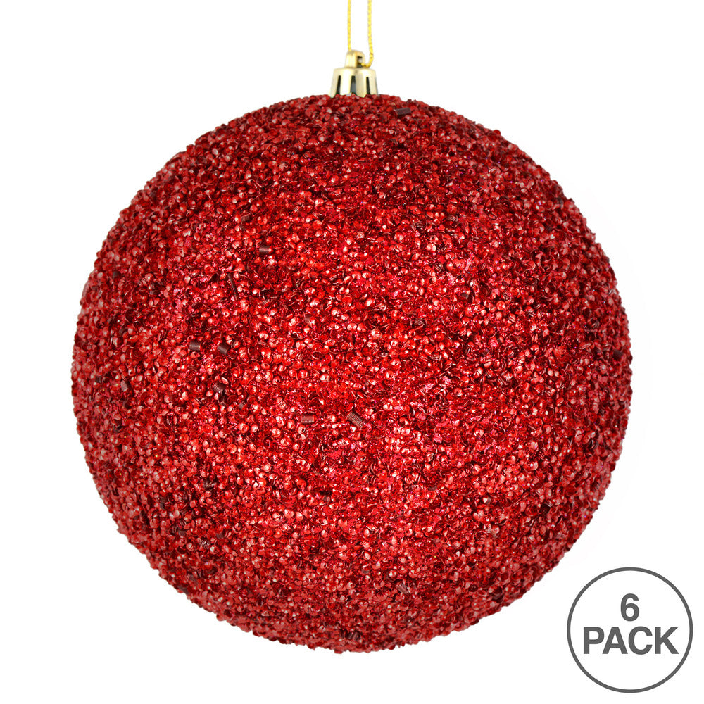 Vickerman 4" Wine Beaded Ball Ornament 6 per Bag