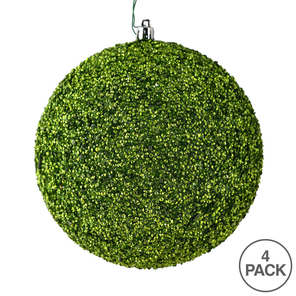 Vickerman 6" Olive Beaded Ball Ornament 4 per Bag
