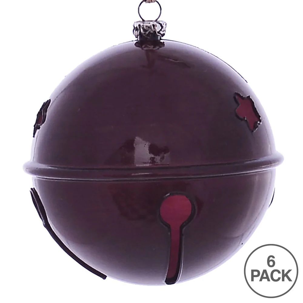 Vickerman 4" Burgundy Wood Grain Bell Christmas Ornament 6 per Bag