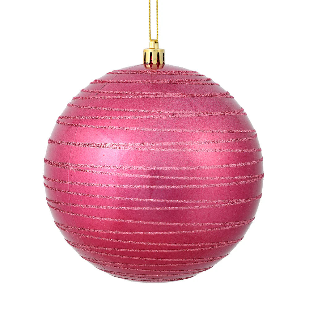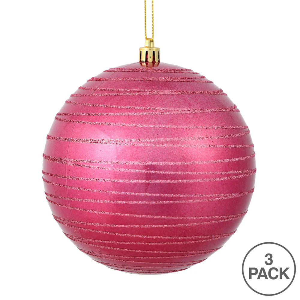 Vickerman 6" Mauve Candy Finish Ball Ornament with Glitter Lines 3 per Bag