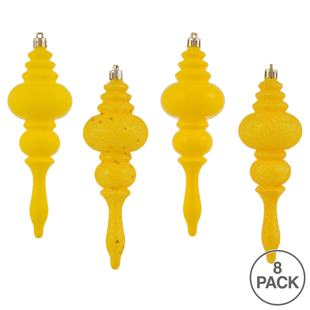 Vickerman 7" Yellow 4-Finish Finial Ornament 8 per Box