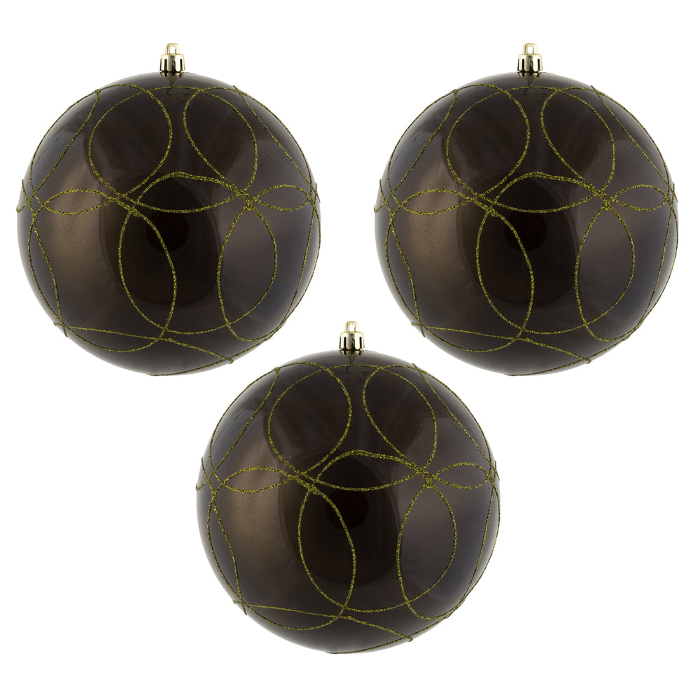 Vickerman 6" Olive Candy Ornament with Circle Glitter Pattern 3 per Bag