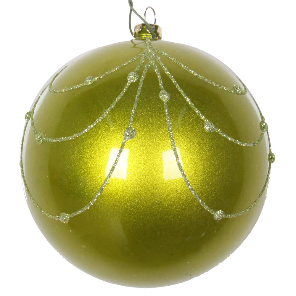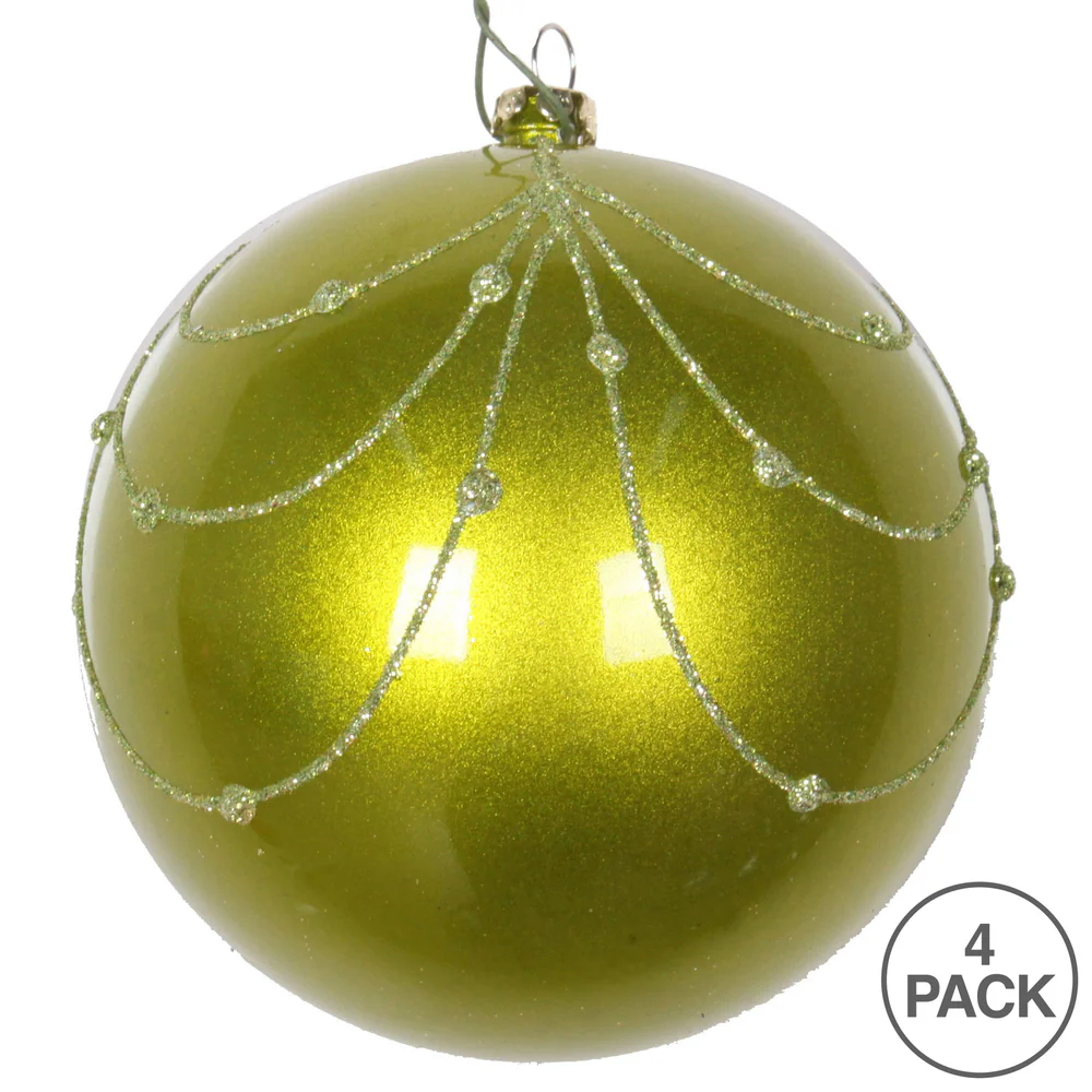 Vickerman 4" Lime Candy Finish Curtain Ornament with Glitter Accents 4 per Bag