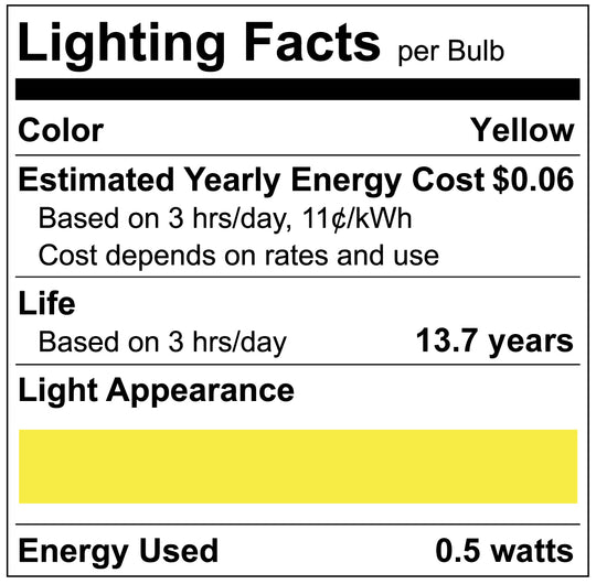 Luxrite LED C7 Small Light Bulb, E12 Candelabra Base, 0.5W, Yellow Finish, Pack of 12 (LR21755)