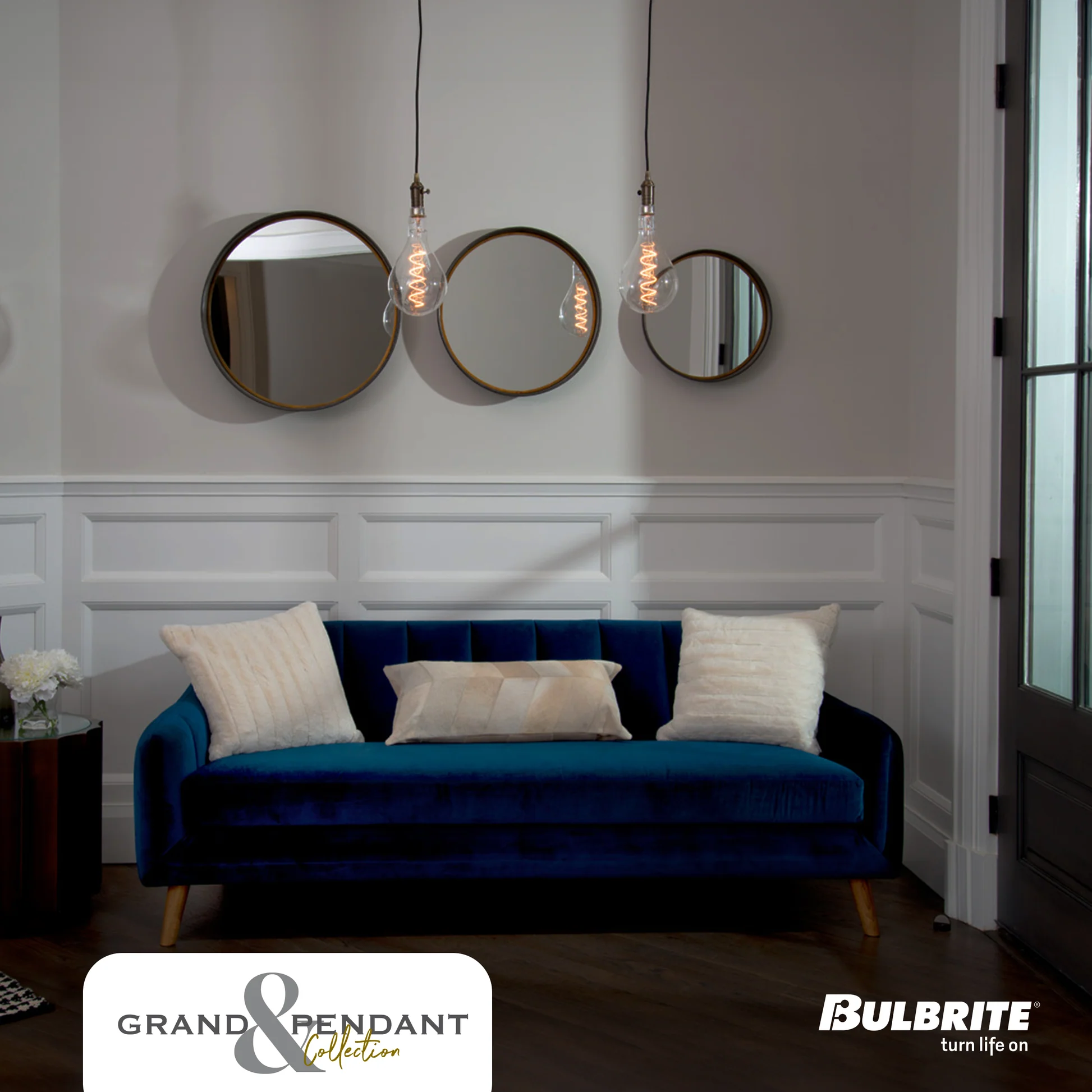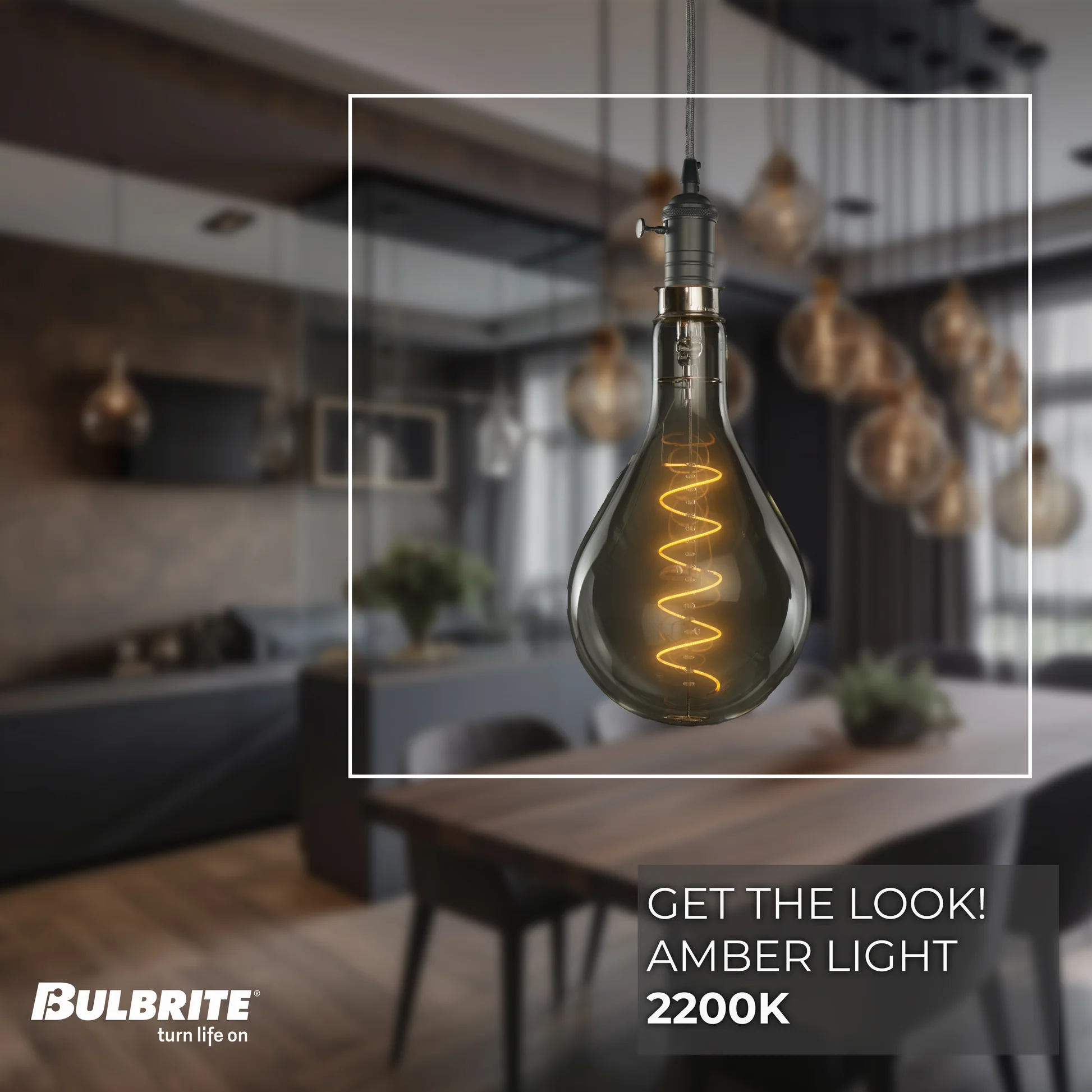 Bulbrite LED Grand Bulb and Pendant Kit of (1) 4 Watt Clear Glass 13" Pear Shaped Bulb and (1) Gunmetal Black Open Socket Pendant on Silver Fabric Braided Cord - 2200K (Amber Light)